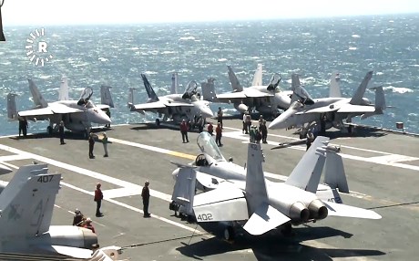 USS GEORGE H.W. BUSH, Persian Gulf – From this US aircraft carrier, fighter jets carry out missions, bombing ISIS.