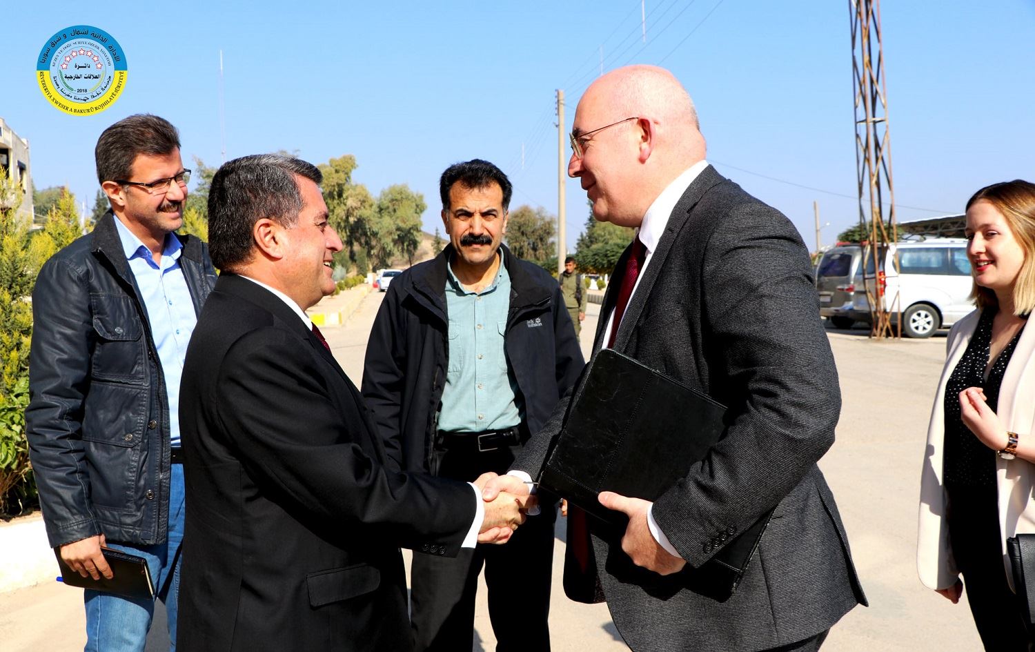 Abdulkarim Omar (L), co-chair of the Foreign Relations Department of the Kurdish-led Autonomous Administration of North and East Syria (NES), meets with Martin Longden, the United Kingdom's special envoy to Syria, November 21, 2019. Photo: NES / social media