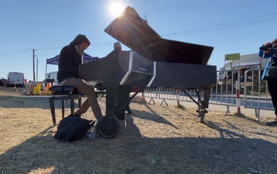 MEDYKA, Poland - A pianist has come all the way from Italy to the Ukraine-Poland border to play piano for the arriving migrants fleeing war at home. The Ukrainians find solace in his performance.