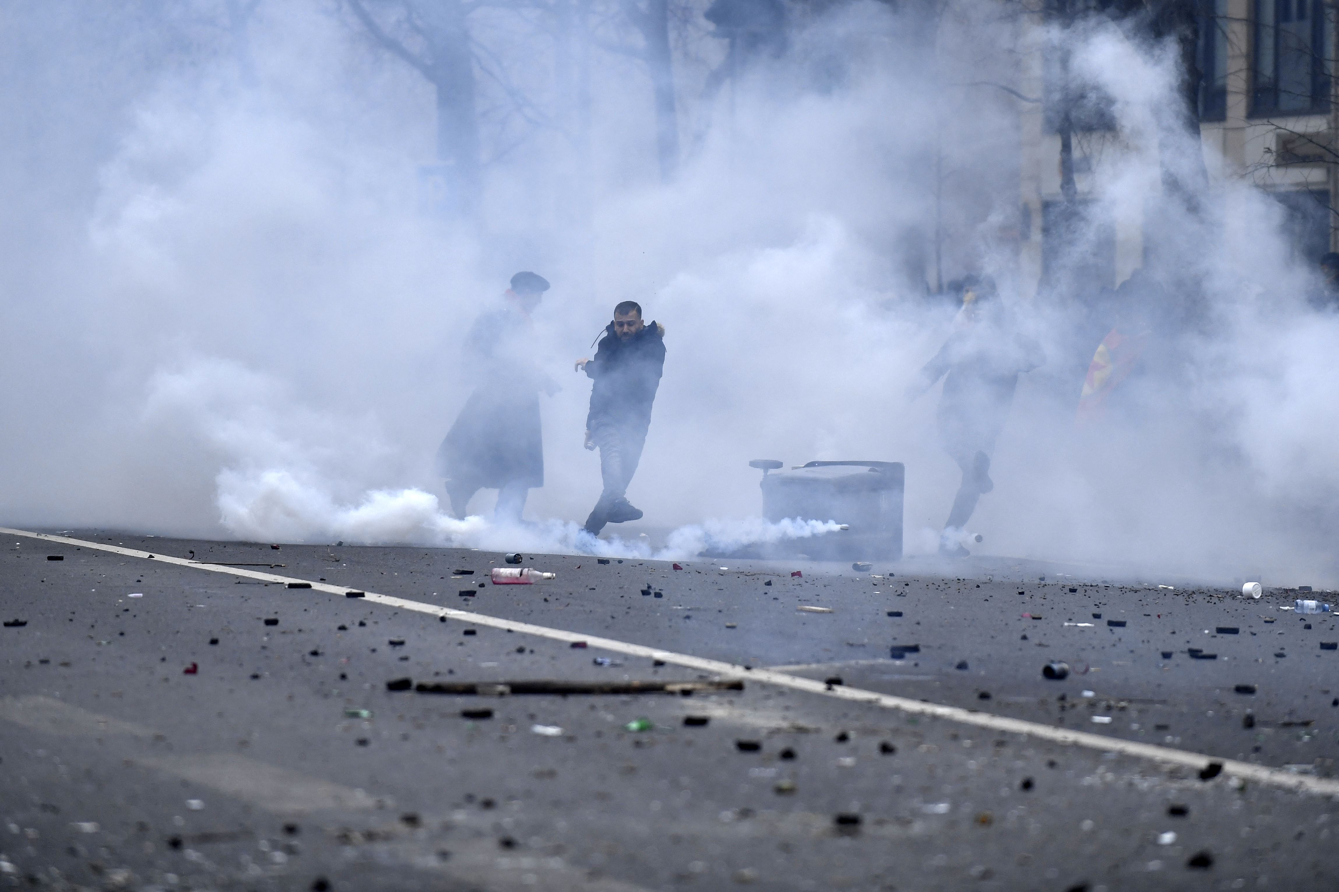 Protesters stand amid tear gas smoke during clashes following a demonstration of members of the Kurdish community, a day after a gunman opened fire at a Kurdish cultural centre killing three people, at The Place de la Republique in Paris on December 24, 2022. Photo: AFP