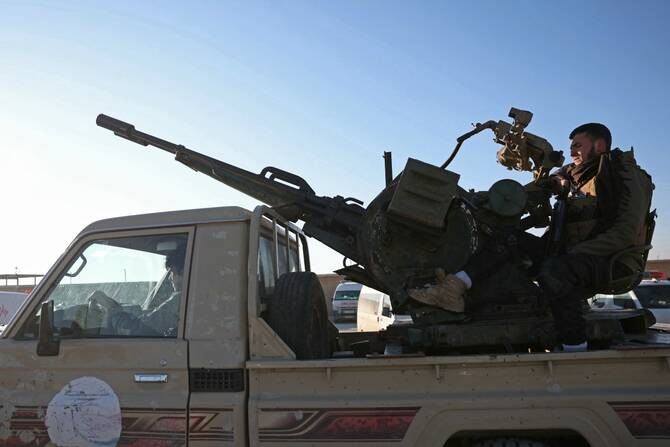 Syrian security forces drive a vehicle mounted with a gun as they enter the al-Hol camp in northeast Syria's (Rojava) Hasaka province on January 21, 2026. Photo: AFP