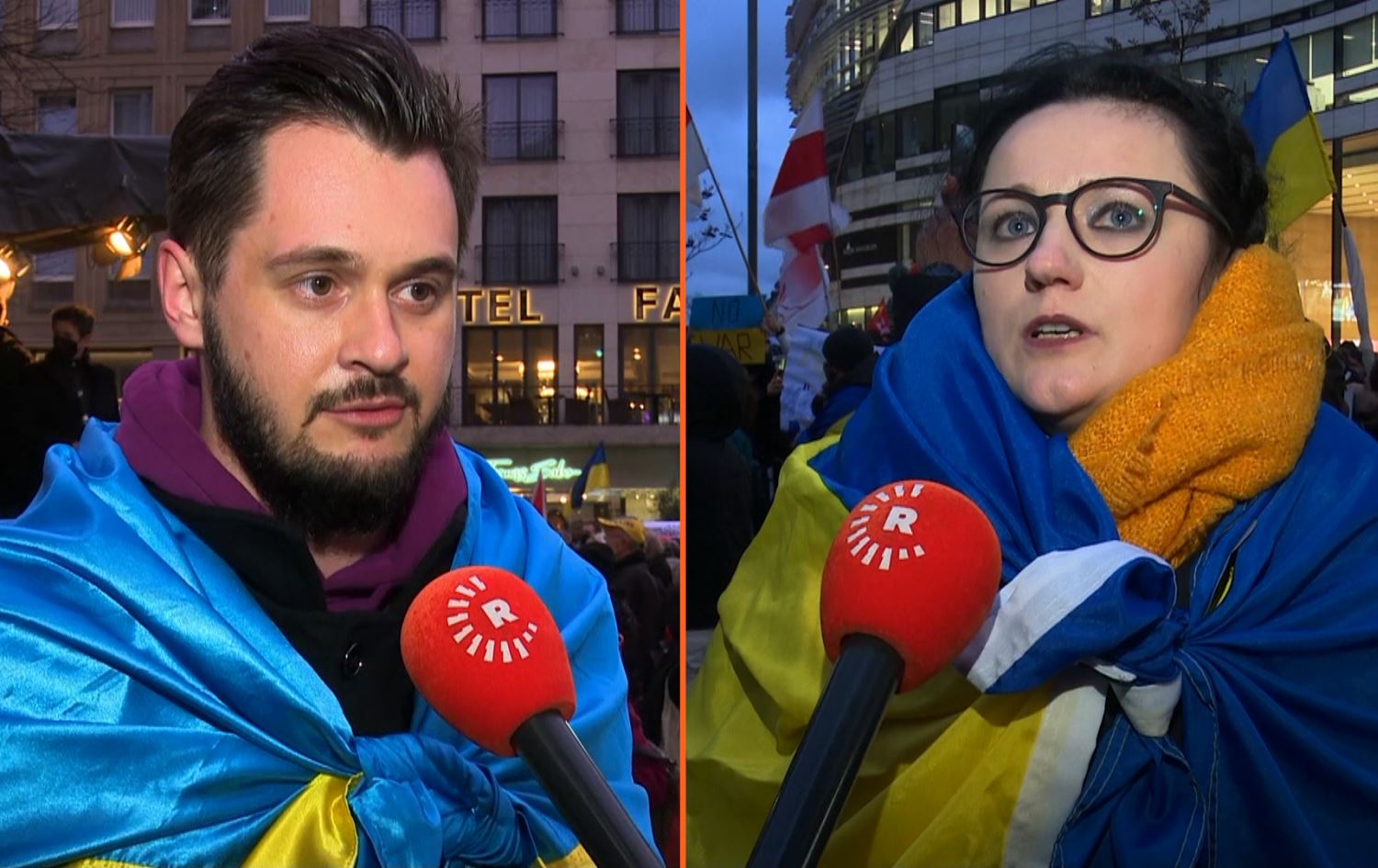 From left: Ukranian citizens in Germany, Vien Adamskyi and Kateryna Kravchenko speak to Rudaw on February 24, 2022. Photo: Rudaw