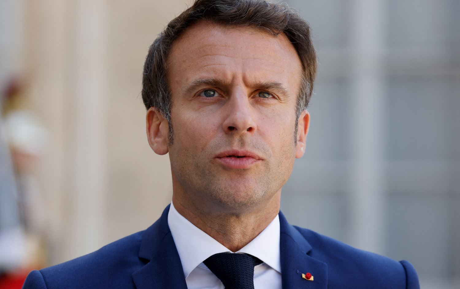 French President Emmanuel Macron gives a joint statement with the Moldovan president after their meeting at the Elysee Palace in Paris on May 19, 2022. Photo: AFP