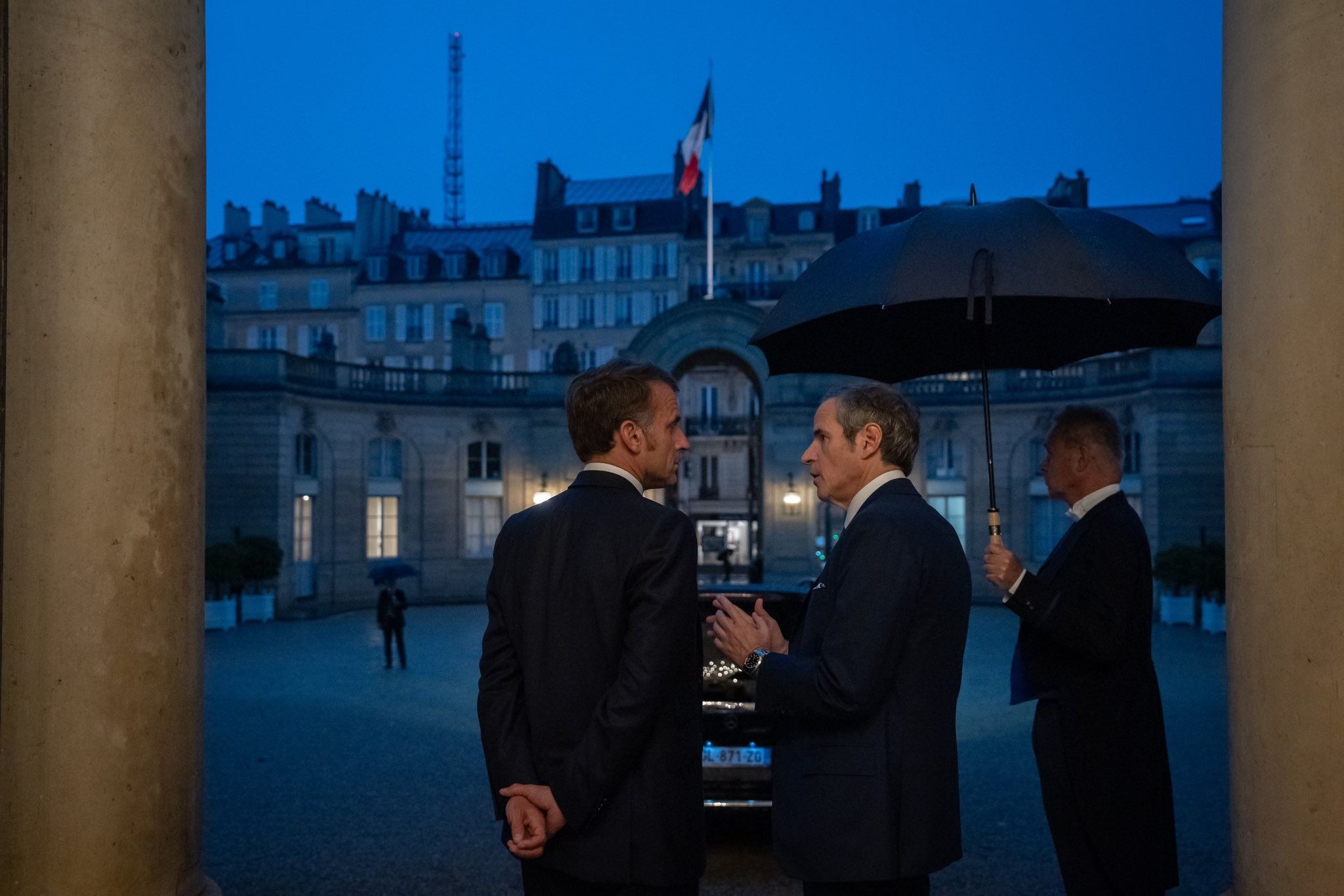 French President Emmanuel Macron recieves IAEA chief Rafael Grossi at the Elysee Palace in Paris on June 25, 2025. Photo: EmmanuelMacron/X