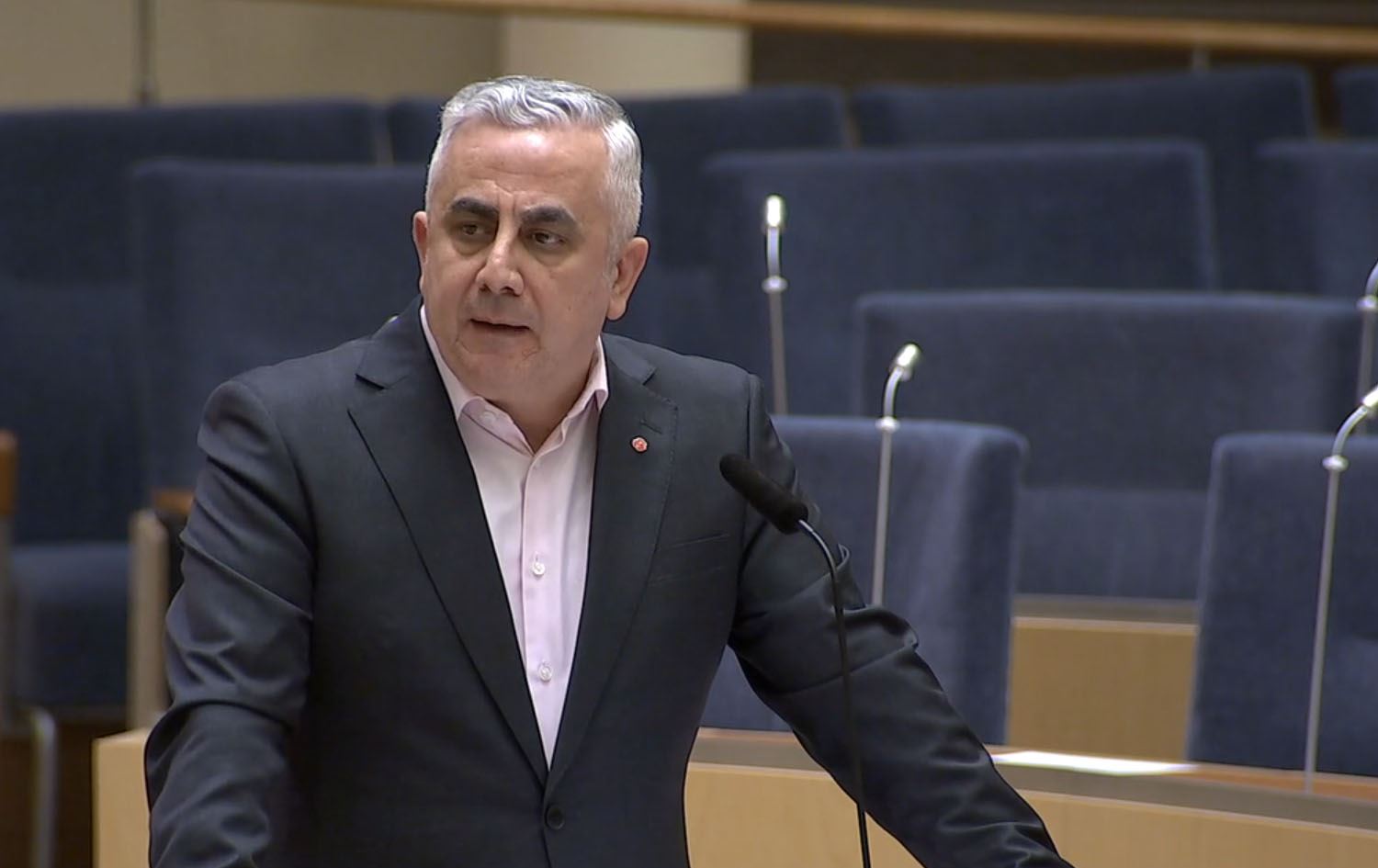 Swedish lawmaker Kadir Kasirga speaking at parliament on January 14, 2025. Photo: palirament