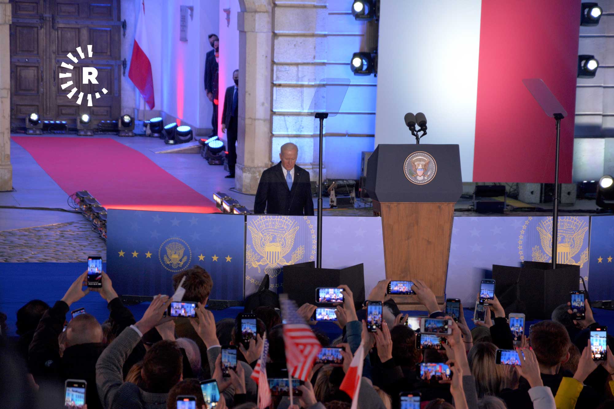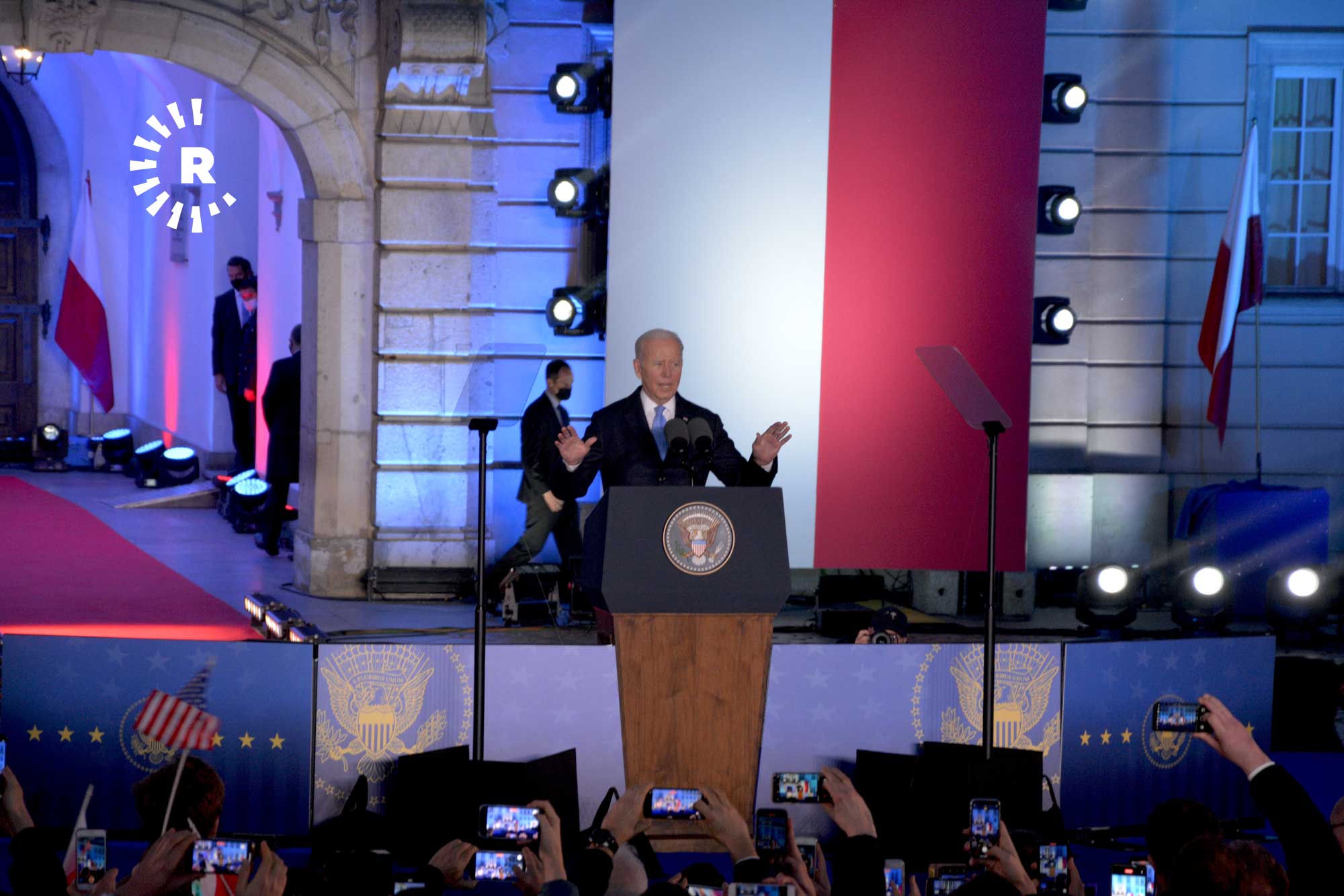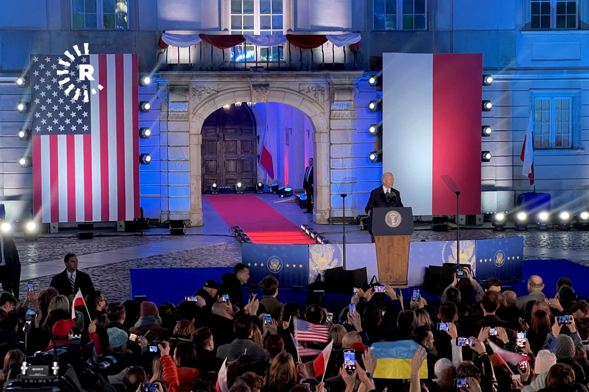 Outside a centuries-old castle in Warsaw, in front of people gathered with Polish, American, and Ukrainian flags, Biden described the war in Ukraine as the “test of all time” in a world struggling “between liberty and repression, between a rules-based order and one governed by brute force.”