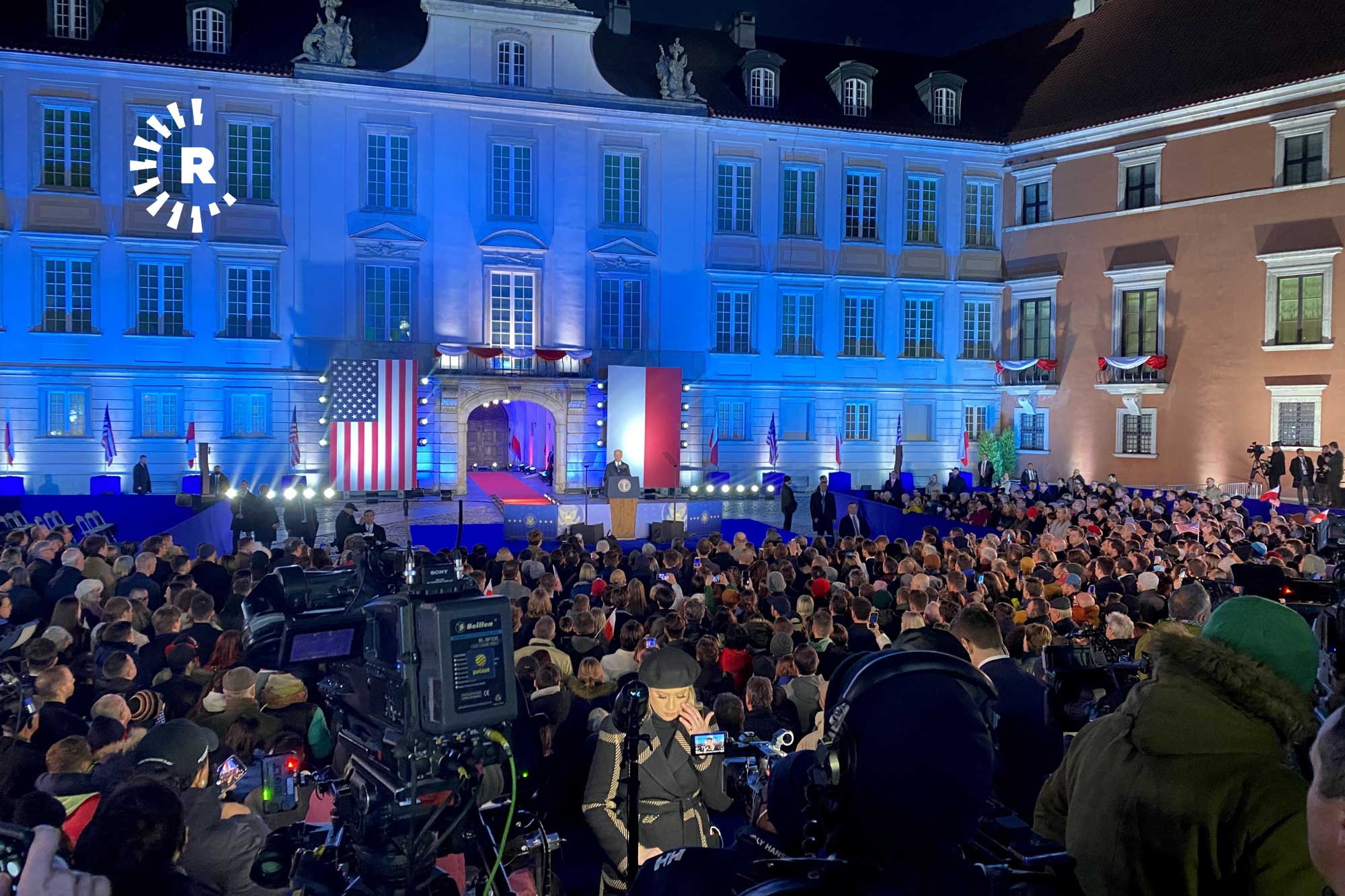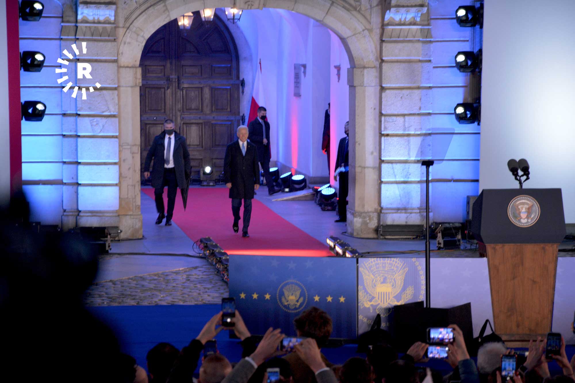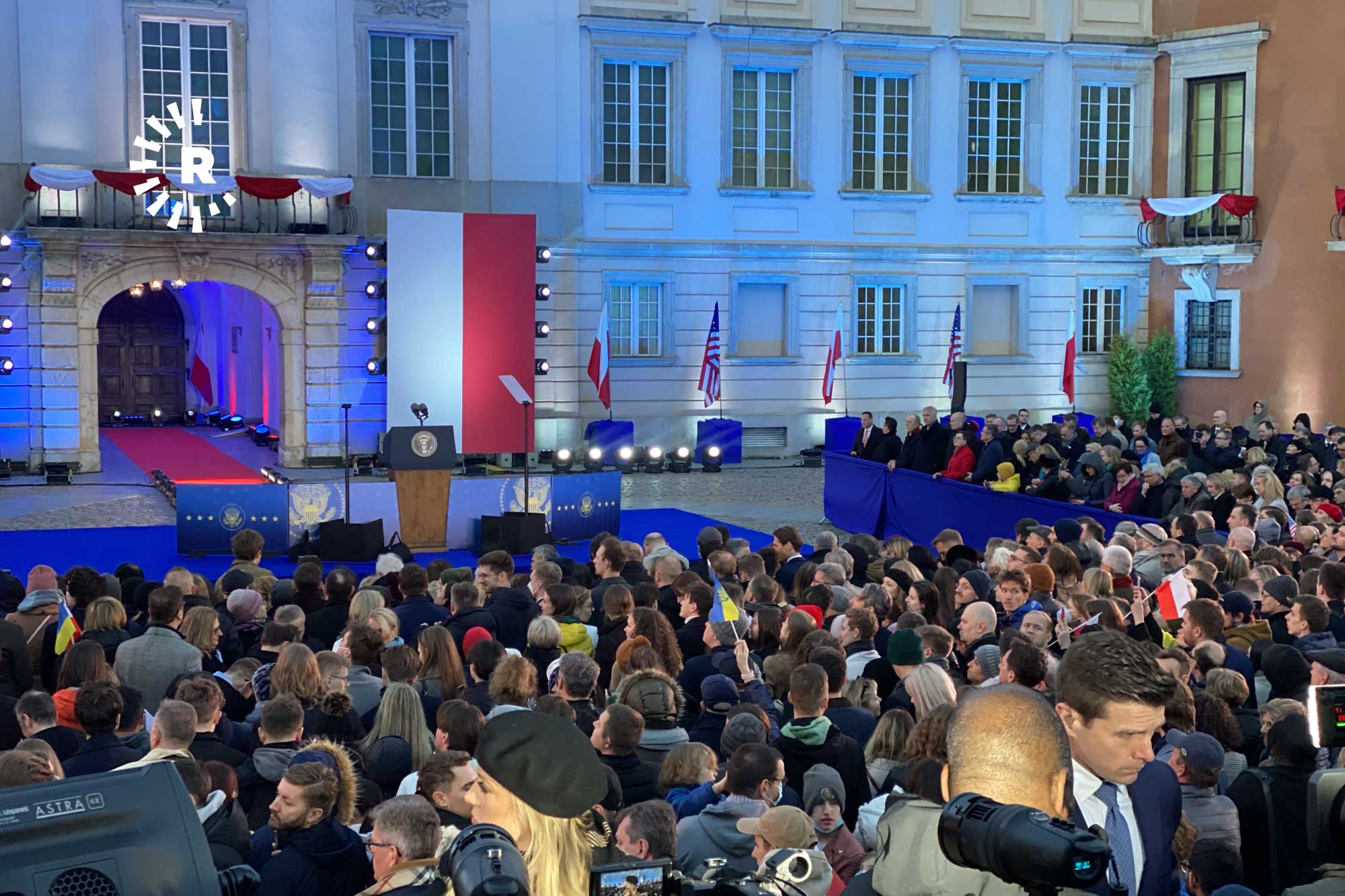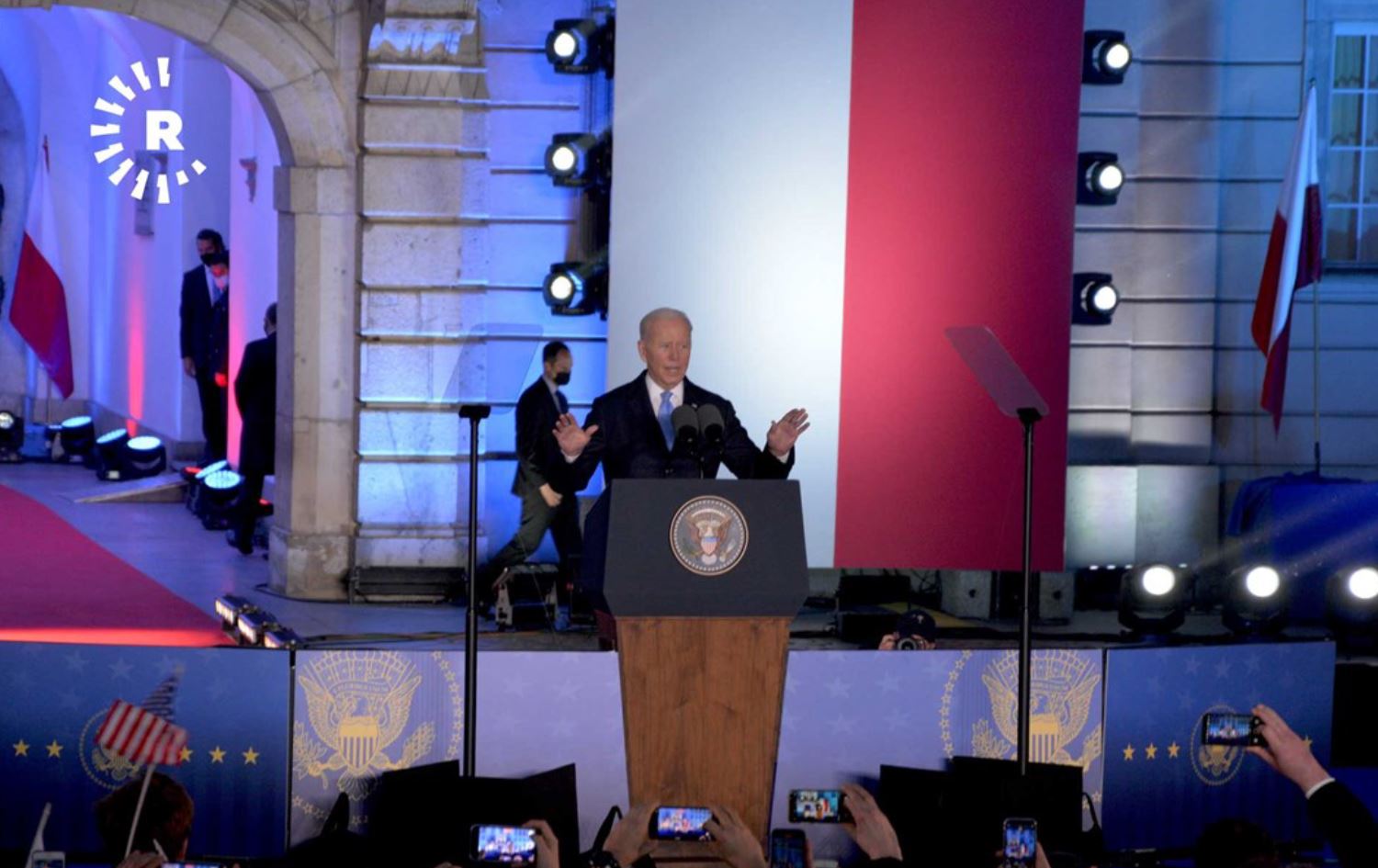 Outside a centuries-old castle in Warsaw, in front of people gathered with Polish, American, and Ukrainian flags, Biden described the war in Ukraine as the “test of all time” in a world struggling “between liberty and repression, between a rules-based order and one governed by brute force.”