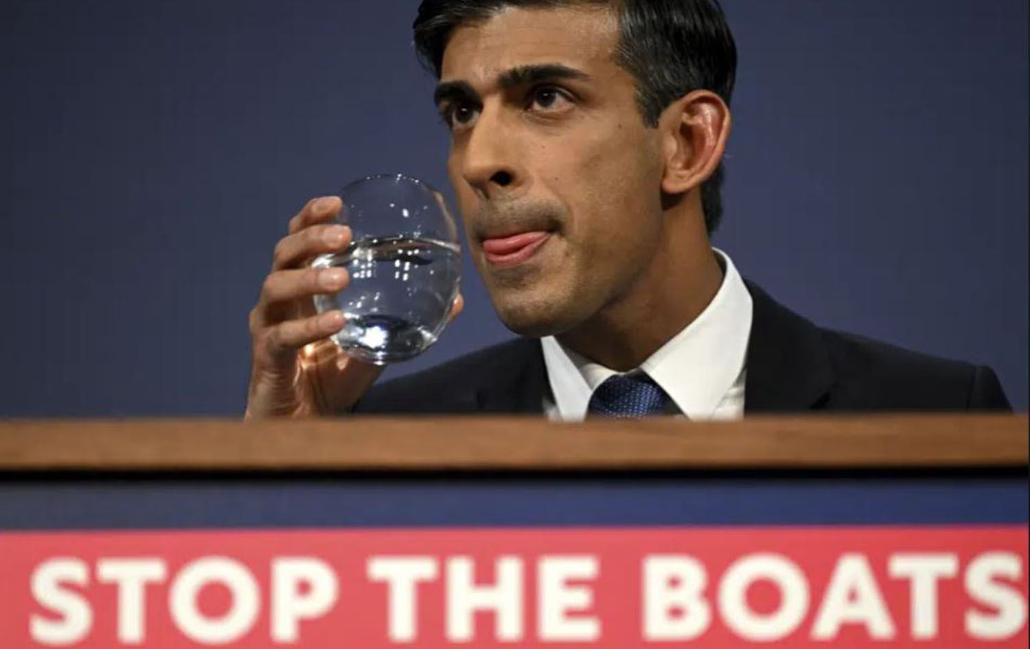 Britain's Prime Minister Rishi Sunak prepares to take a sip of water during a press conference following the launch of new legislation on migrant channel crossings at Downing Street, London, Tuesday, March 7, 2023. File photo: AP