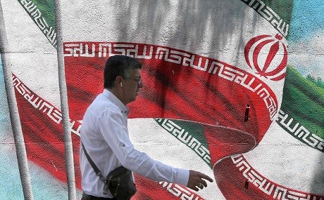 An Iranian man walks past a mural painted with the Iranian flag in Tehran, June 25, 2019. Photo: Atta Kenare / AFP