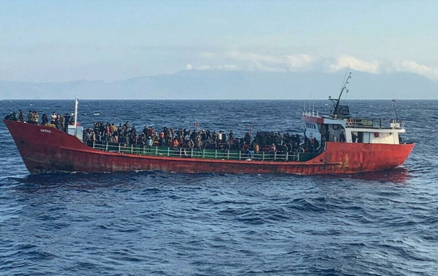 A ship carrying migrants during a rescue operation off the island of Crete, Greece. Date: October 29, 2021. Photo: AFP