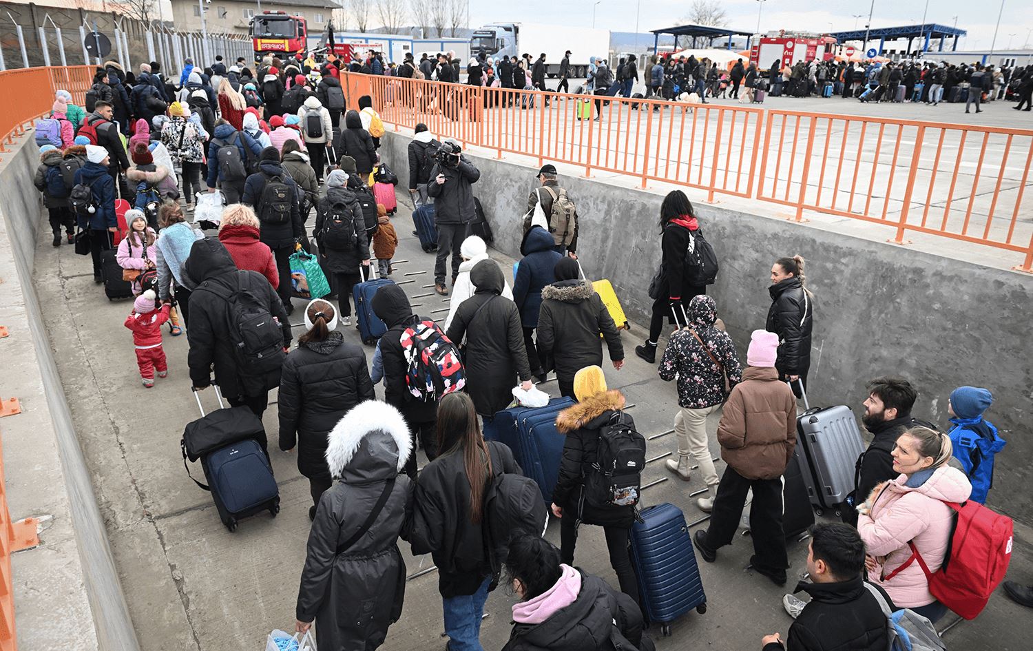 People coming from Ukraine descend from a ferry boat to enter Romania on February 26, 2022. Photo: AFP