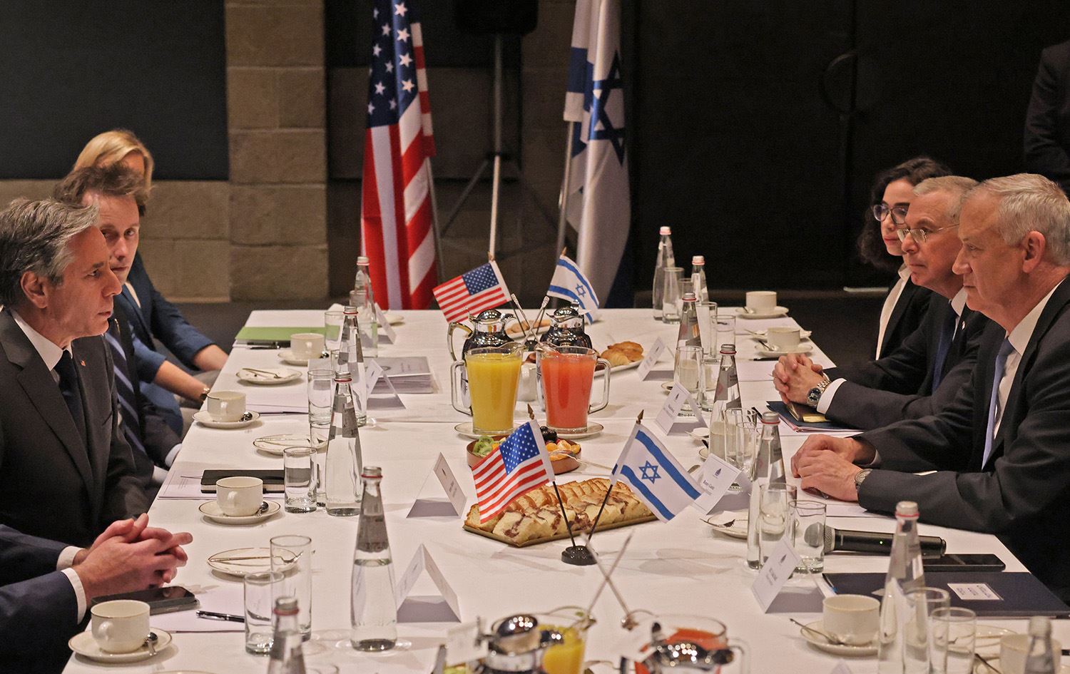 Israel’s Defence Minister Benny Gantz (R) meets with US Secretary of State Antony Blinken in Jerusalem on March 27, 2022, ahead of talks in Israel with Arab foreign ministers. Photo: Menahem Kahana/AFP