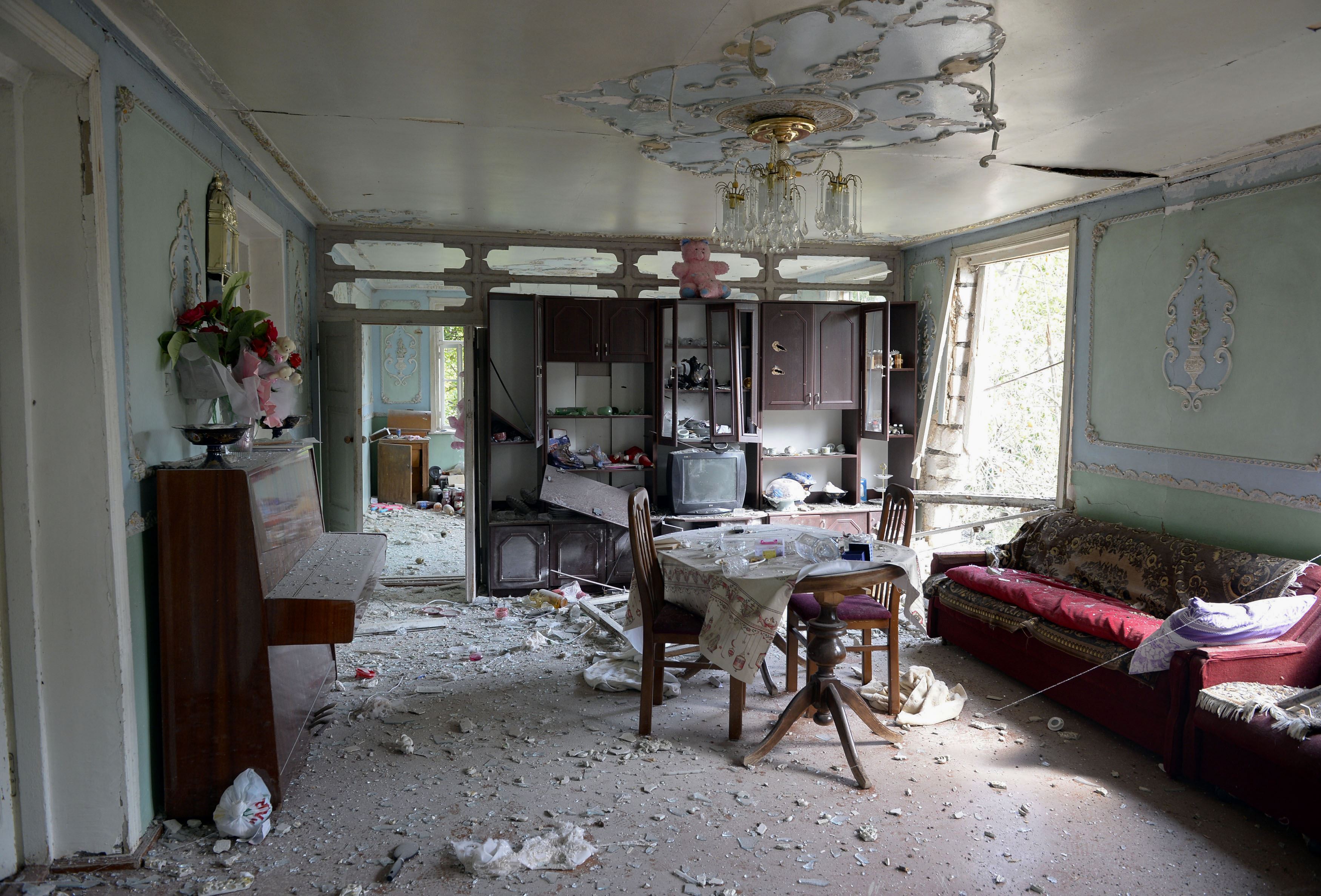 An interior view of a house which is said was damaged in recent shelling during clashes between Armenian separatists and Azerbaijan over the breakaway Nagorny Karabakh region, in the village of Sahlabad outside the Azerbaijani city of Tartar on September 29, 2020. Photo: Tofik Babayev / AFP
