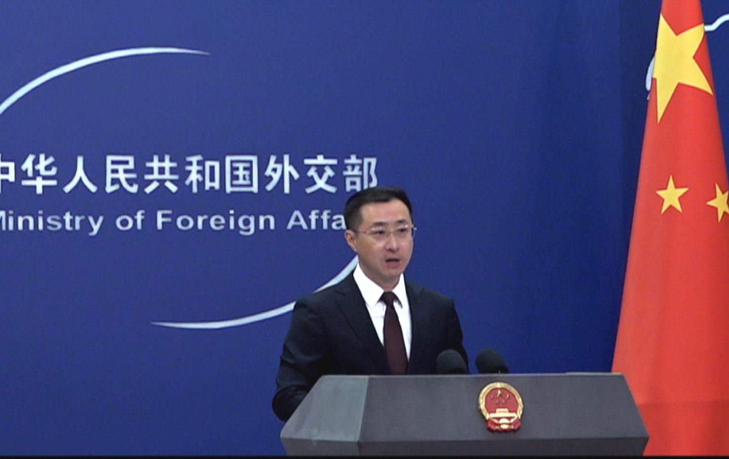 Chinese foreign ministry spokesperson Lin Jian speaking at a press conference in Beijing on April 30, 2024. Photo: Rudaw
