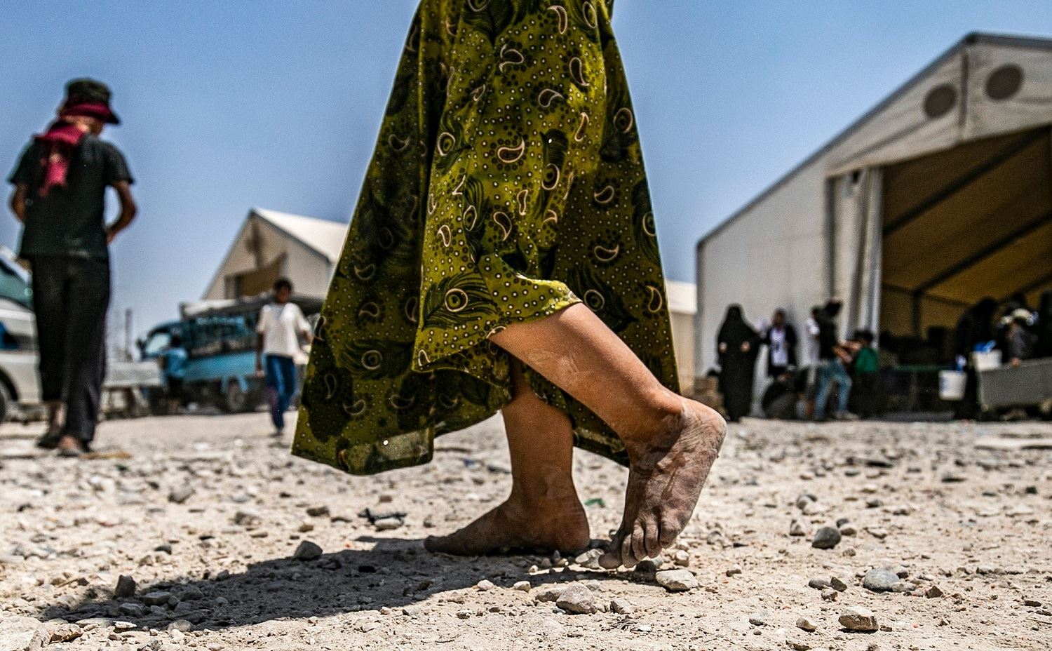 In this file photograph taken on July 22, 2019, a young child walks barefoot at al-Hol camp for displaced people, in al-Hasakeh governorate, north-eastern Syria. Photo: Delil Souleiman/ AFP
