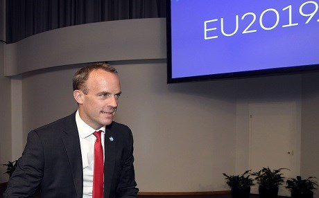British Foreign Secretary Dominic Raab at an EU meeting in Helsinki, Finland on August 29,2019