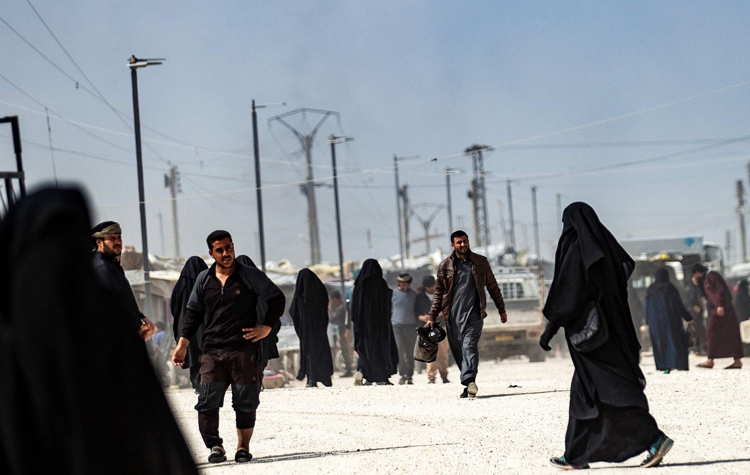 People walk at the Kurdish-run al-Hol camp, northeastern Syria on March 3, 2021. Photo: Delil Souleiman / AFP