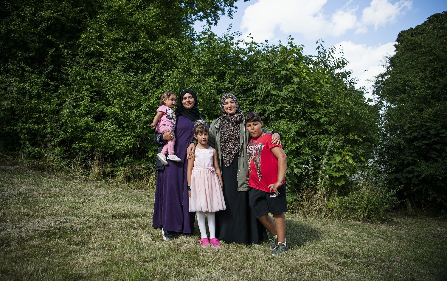 Syrian Majda Ibrahim, 38, (second from right) poses with her children in Skogas, south of Stockholm, Sweden on August 5, 2020. Photo: Johnathan Nackstrand / AFP