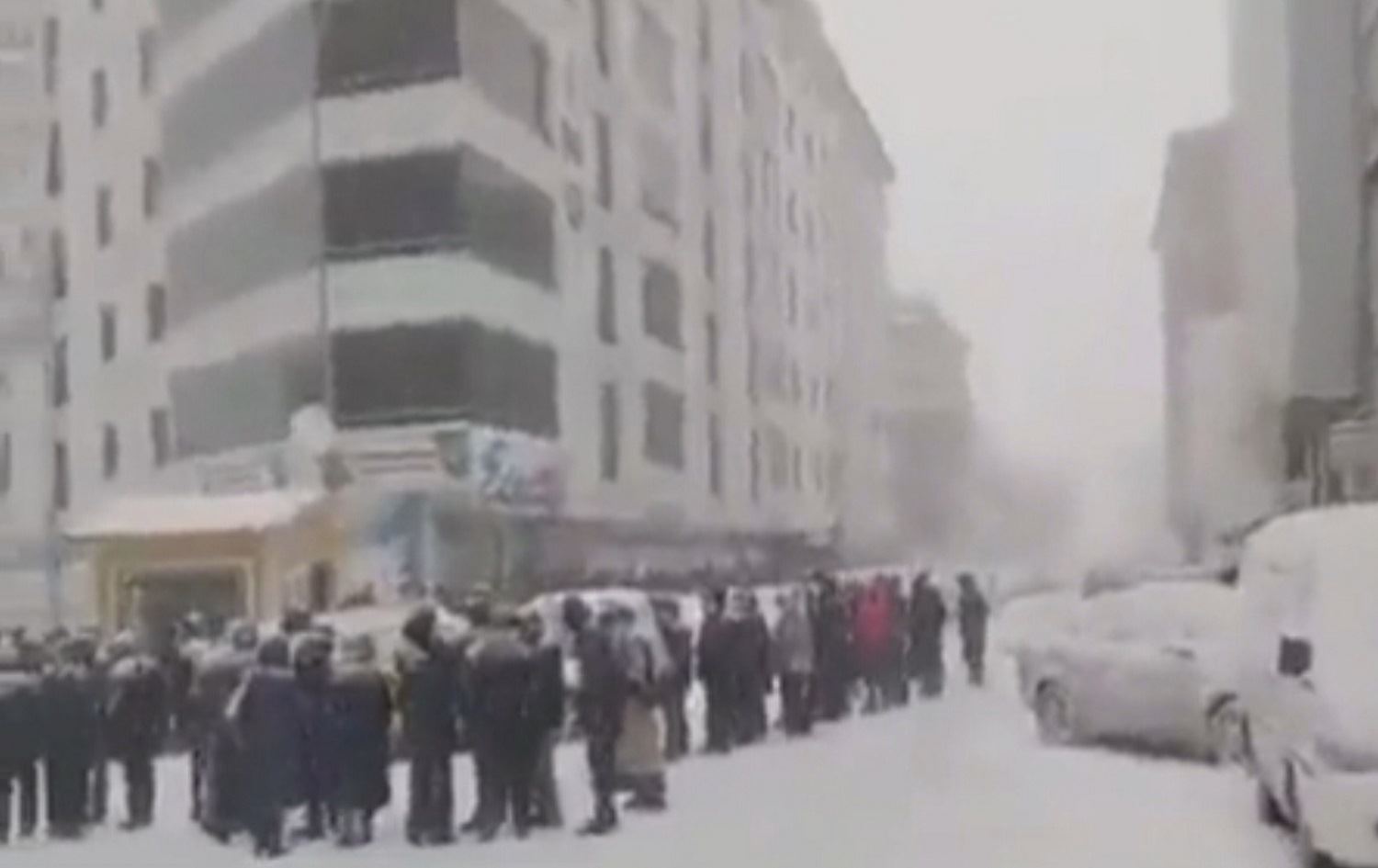 Li Parêzgeha Erzeronê di demekê de ku pileya germê 5 pile daketiye bin sifrê de beşeke welatî bi demjimêran dikevin dorê daku goştê erzan bikirin.