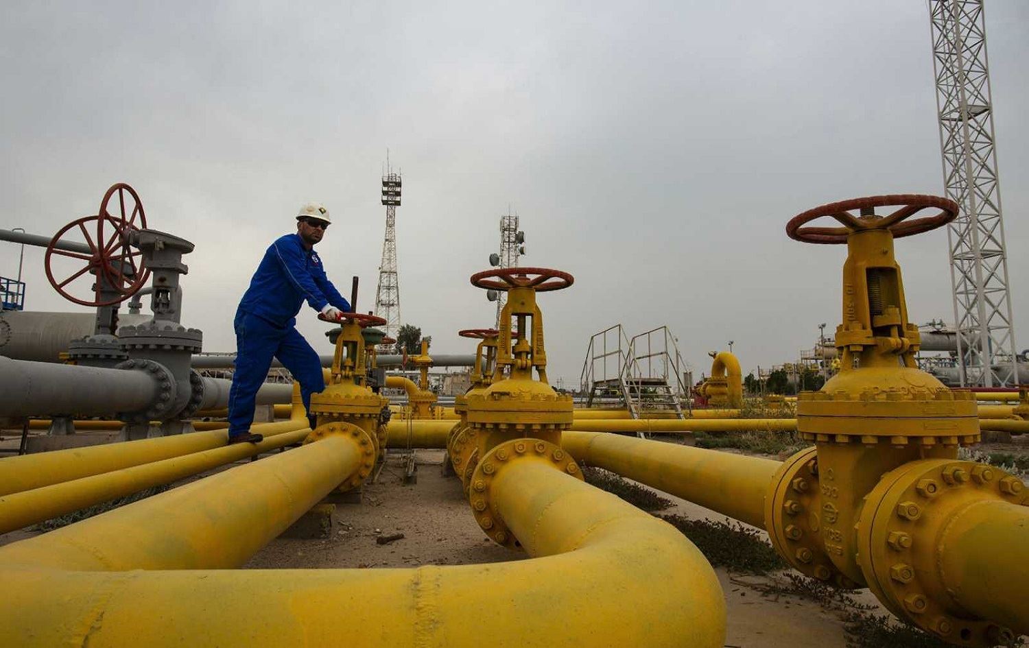 Karkerek li kêlgeha gazê ya Nehr Bin Omer li bakurê Besrayê kar dike.Wêne: AFP / Hussein Faleh