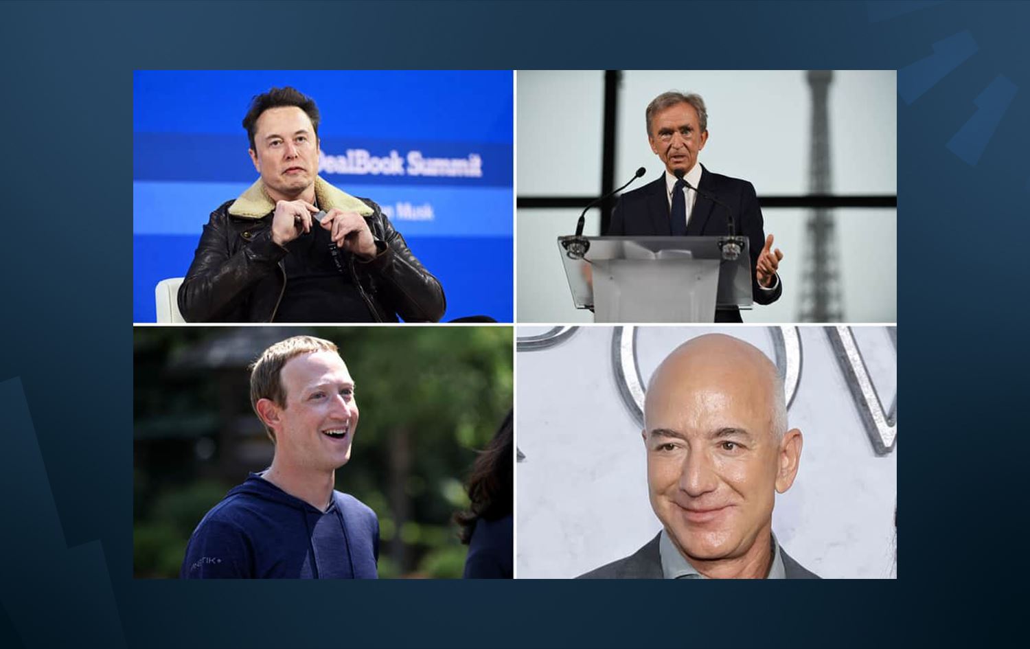 Li pey wan, demezrînerê Amazonê Jeff Bezos (179 milyar dolar), yek ji damezrînerê kompanyaya Oracleyê Larry Ellison (142,6 milyar dolar) û Serokê kompanyaya Metayê Mark Zuckerberg (138,8 milyar dolar) tên.