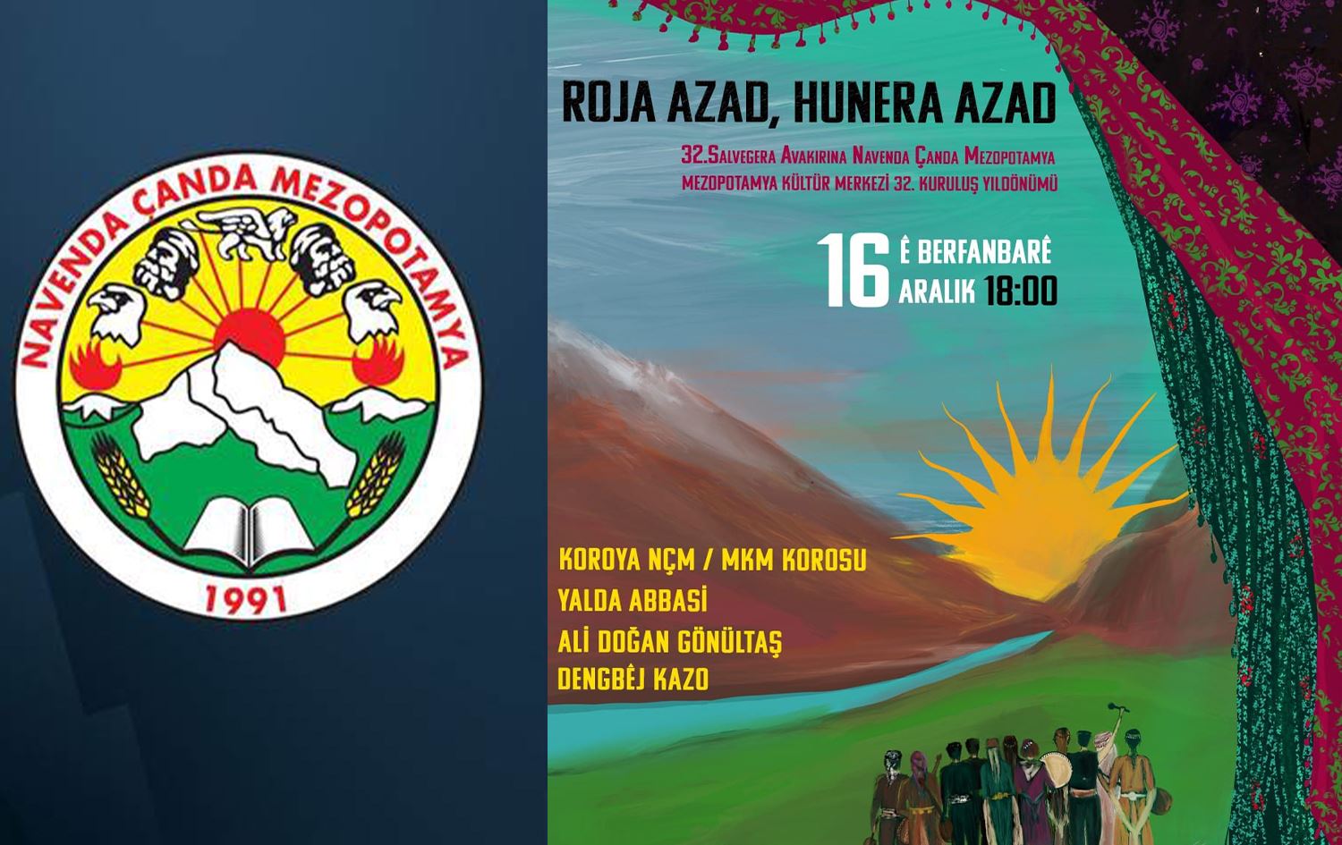 Navenda Çanda Mezopotamyayê (NÇM) bi wesîleya 32yemîn salvegera xwe, dê 16ê Kanûna Pêşîn, bi dirûşma “Roja azad, hunera azad” li navenda Pêşandanan a Yahya Kemal Beyatli ya li Kuçukçekmece ya Stenbolê konser li dar bixista.
