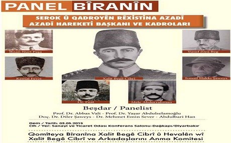 Amed (Rûdaw) - Li Bakûrê Kurdistanê li Amedê panêleke bi navê Serok û Kadroyên Rêxistina Azadî hate li dar xistin. Panêl ji aliyê “Komîteya Bîranîna Xalid Begê Cibrî û Hevalên wî” ve hatî organîzekirin de jiyana Xalit Begê Cibrî û xebatên wî hatin nirxandin.