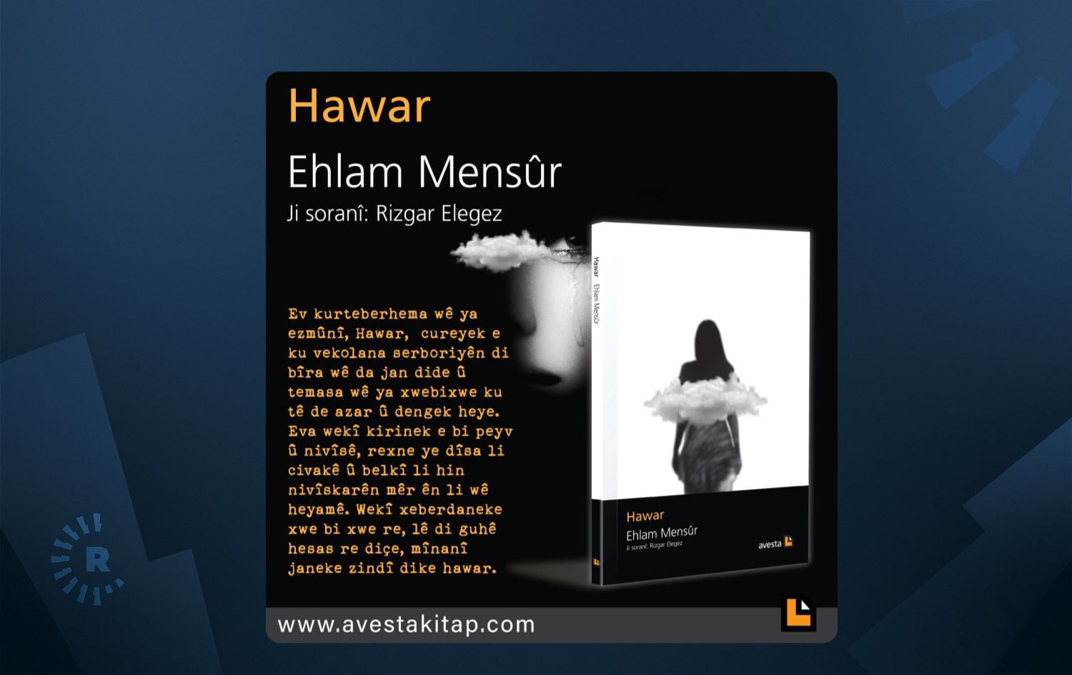 Weşanxaneya Avesta, romana Ehlam Menûsr a bi Kurmancî "Hawar" çap û belav kiriye. Grafîk: Rûdaw.