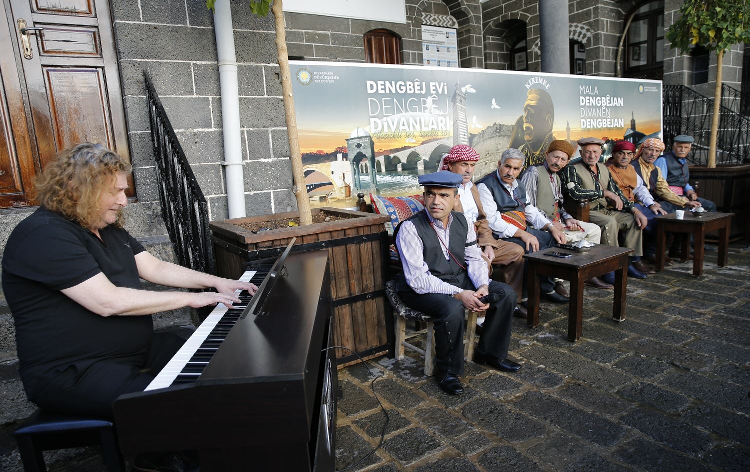 Piyanîst Tuluyhan Ugurlu li "Mala Dengbêjan" a Şaredariya Bajarê Mezin a Amedê li navçeya Sûrê, bi dengbêjên çand û hunera gelê Kurd re hat ba hev.