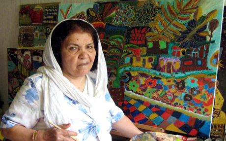 Silêmanî (Rûdaw) - Di dîmenên li salona mûzexaneyê de, ji pêşangeheke şêwekarî bêhtir dikare çîrokek werin dîtin. Xelk yek bi yek diçin ber tabloyan û bala xwe didin harmoniya tevlîheviya rengan û piştre li jinekê dinêrin. Tevî ku li derve pankartek heye ku dibêje li jor pêşangeheke şêwekarî heye, lê belê di rastiya xwe de jinek li jor rûniştiye ku heta beriya çend salan jî ti têkiliya wê bi firçe û boyaxê re qet çênebibû. Ew jin Hacî Xanim a temen 74 salî ye.