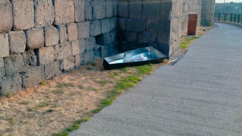 Grûpa ku xwe bi “Înîsiyatîfa Ciwanên Amedê” nav dike piştî berzkirina dirûşmeya "Amed ranezê, xwedî li bîra xwe derkeve" hin darbestên pêşangehê ji Sûran avêtin xwarê.