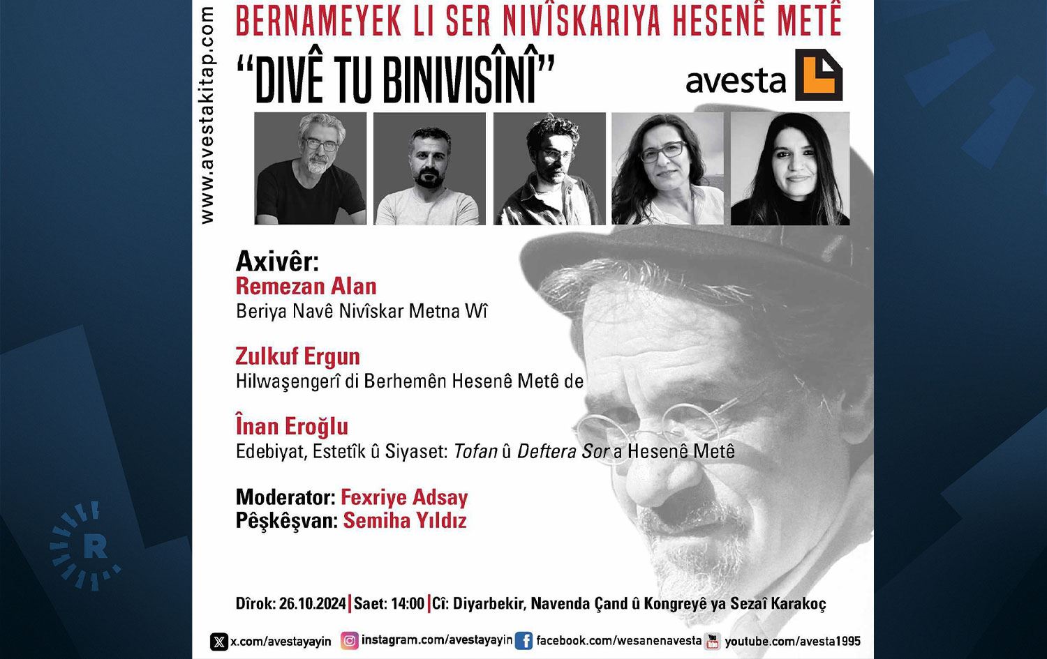 Nivîskar Ramazan Alan, Zulkuf Ergun û Înan Eroglu dê di bernameyê de li ser berhem û hêmayên Hesenê Metê biaxivin.