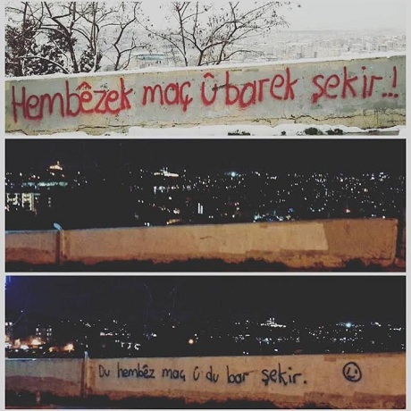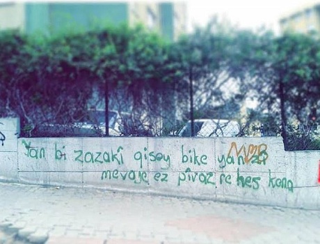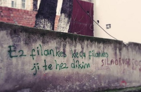Carekê min li ser dîwarekî dinivîsand. Zilamek ji wê de derket û got, “Ev çi ye. Hûn dîwaran pîs dikin. Jixwe nayê xwendin jî.” Yanî behsa Kurdî dikir. Ez dizanim ku fersend di dest hinekan bikeve ewê li min bidin. Lê Kurd gelekî pê kêfxweş dibin. Ji ber ku cara yekem e ku li aliyê Tirkiyê bi Kurdî li ser dîwaran tê nivîsandin. Belê li Kurdistanê hene. Lê li wan deran tunebûn.