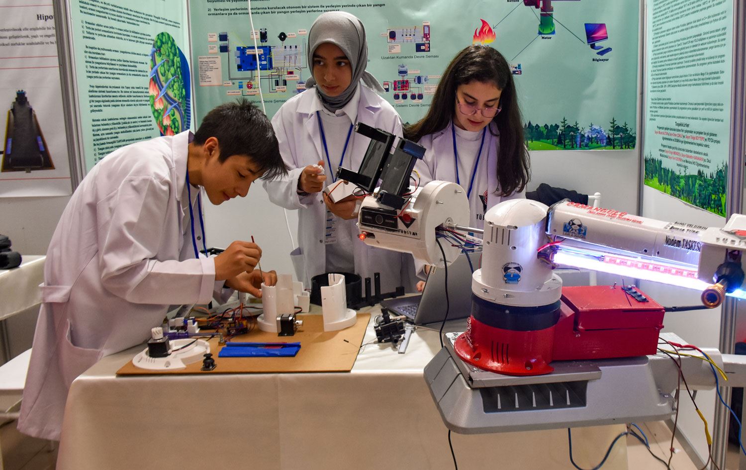 Xwendekarên ji Mûşê di pêşangehê de bi projeya xwe ya hişê çêkirî ya tesbîtkirin û vemirandina agirê daristanan bi ser ketin.