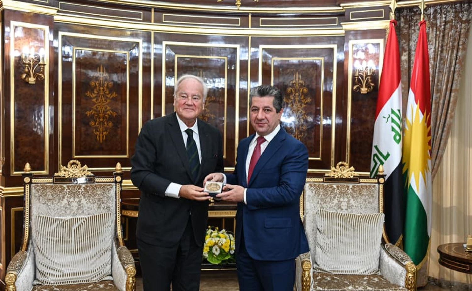 Serokwezîrê Herêma Kurdistanê Mesrûr Barzanî pêşwazî li Serokê Lijneya Pêwendiyên Derve, Berevanî û Hêzên Çekdar a Encûmena Pîran a Fransayê Senator Christian Cambon kir.