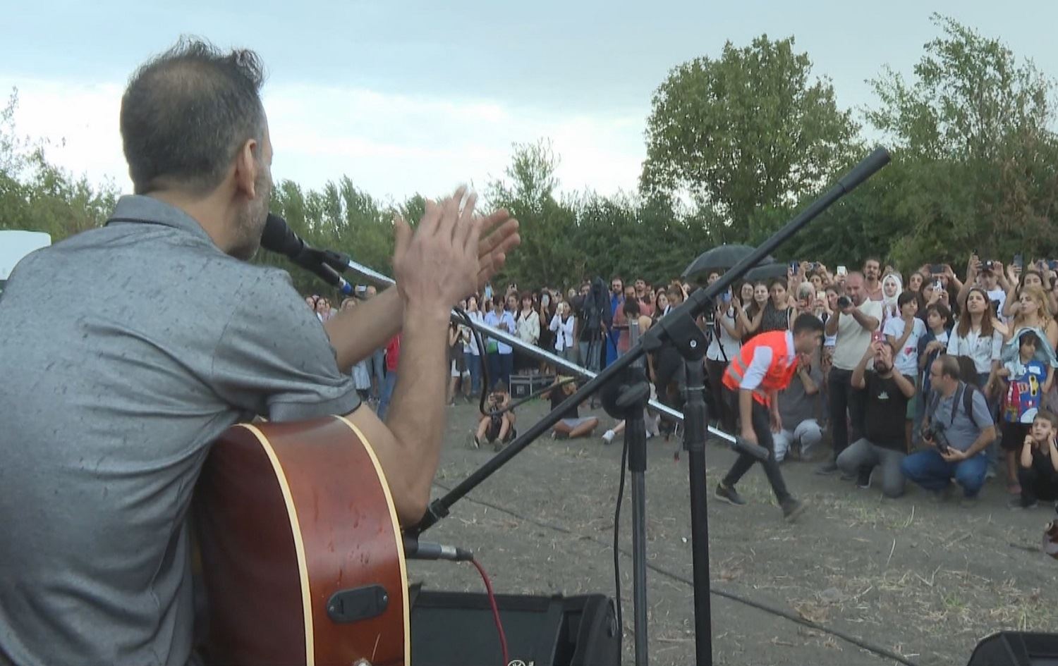 Geştyar û welatî di bin barana ewil a demsalê de li Baxçeyên Hevselê hatin ba hev û guhdarî li hunermend Mehmet Atlî kirin.