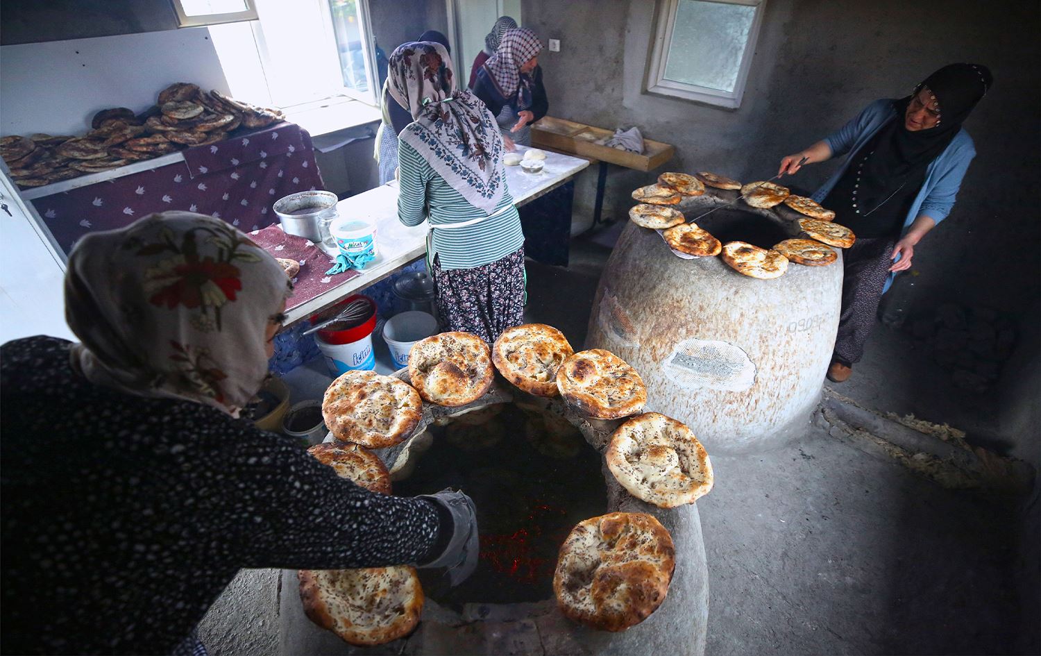 Li gundê Miyadînê yê parêzgeha Xarpêtê ya Bakurê Kurdistanê bi hev re tenûra nan ji xwe re vekirin.