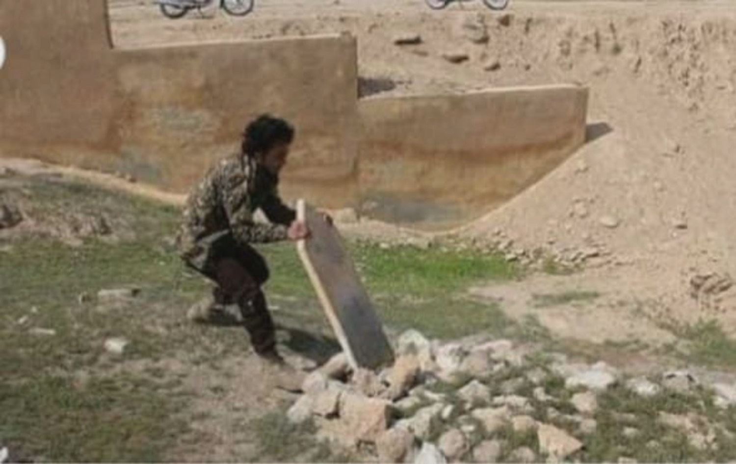 Hewlêr (Rûdaw) - Çekdarên opozisyona Sûriyê yên girêdayî Tirkiyê û Erebên hawirde goristana gundekî Efrînê têk dane, da ku kevir û mermerên wê bidizin.
