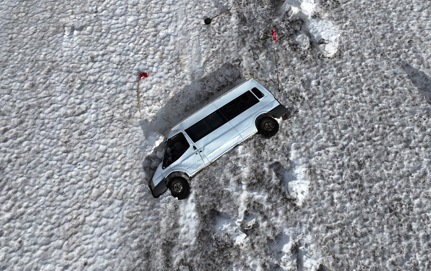 Li aliyê din bi helîna berfê re mînîbusa ku ji ber aşûta îsal di bin berfê de mabû jî derket holê.