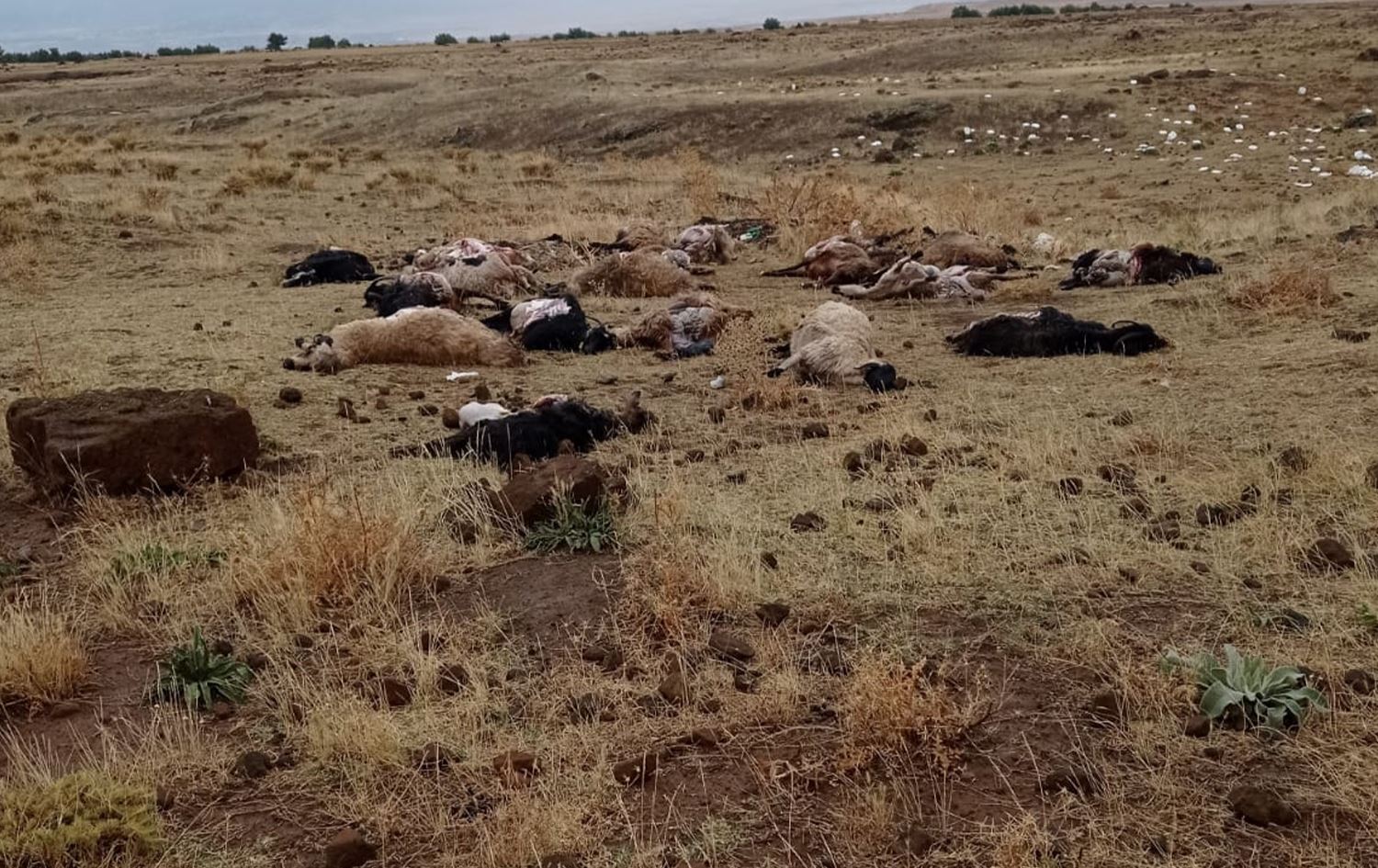 Yunus Çetinerê ku çû cihê bûyerê got, “Ji ber lêdana brûskê 25 serî pez mirar bûn, em ji berpirsan alîkariyê dixwazin.”