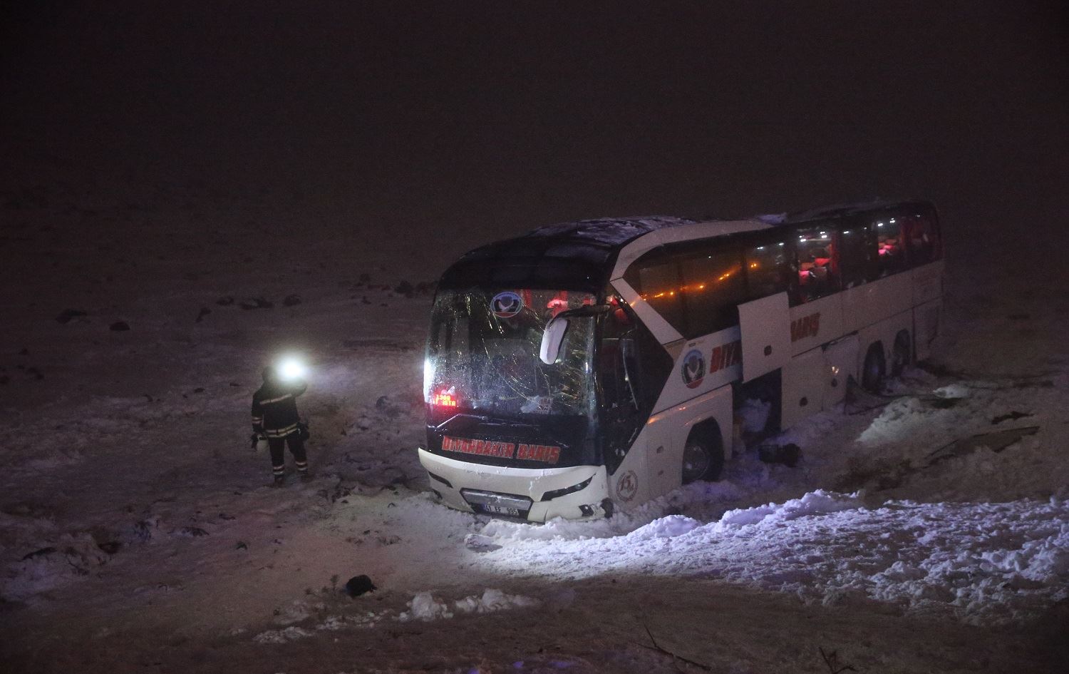 Peyamnêrê Rûdawê Abduselam Akincî ragihand ku otobûsa rêwiyan a bi plaqeya 41 EF 995 a şofêrê wê Mehmet Faysal Işik e, li ser rêya di navbera Amed û Rihayê de li 36mîn kîlometreyên ji ber berf û cemedê ji kontrola şofêr derket û wergeriya.