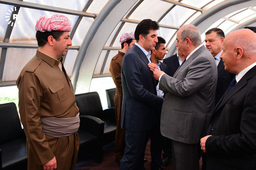 Şandeke bilind a Iraqê bi serokatiya Serokomarê Iraqê Fuad Mehsûm, Cîgirên Serokomarê Iraqê Eyad Ellawî û Usame Nuceyfî beşdarî taziyeyê bû.