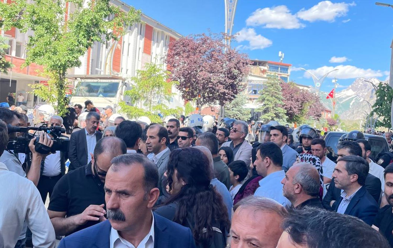 Tevî qedexeya çalakiyan parlamenterên DEM Partiyê û siyasetmedarên Kurd li meydanê ne û li gel xelkê bajêr biryarê protesto dikin.