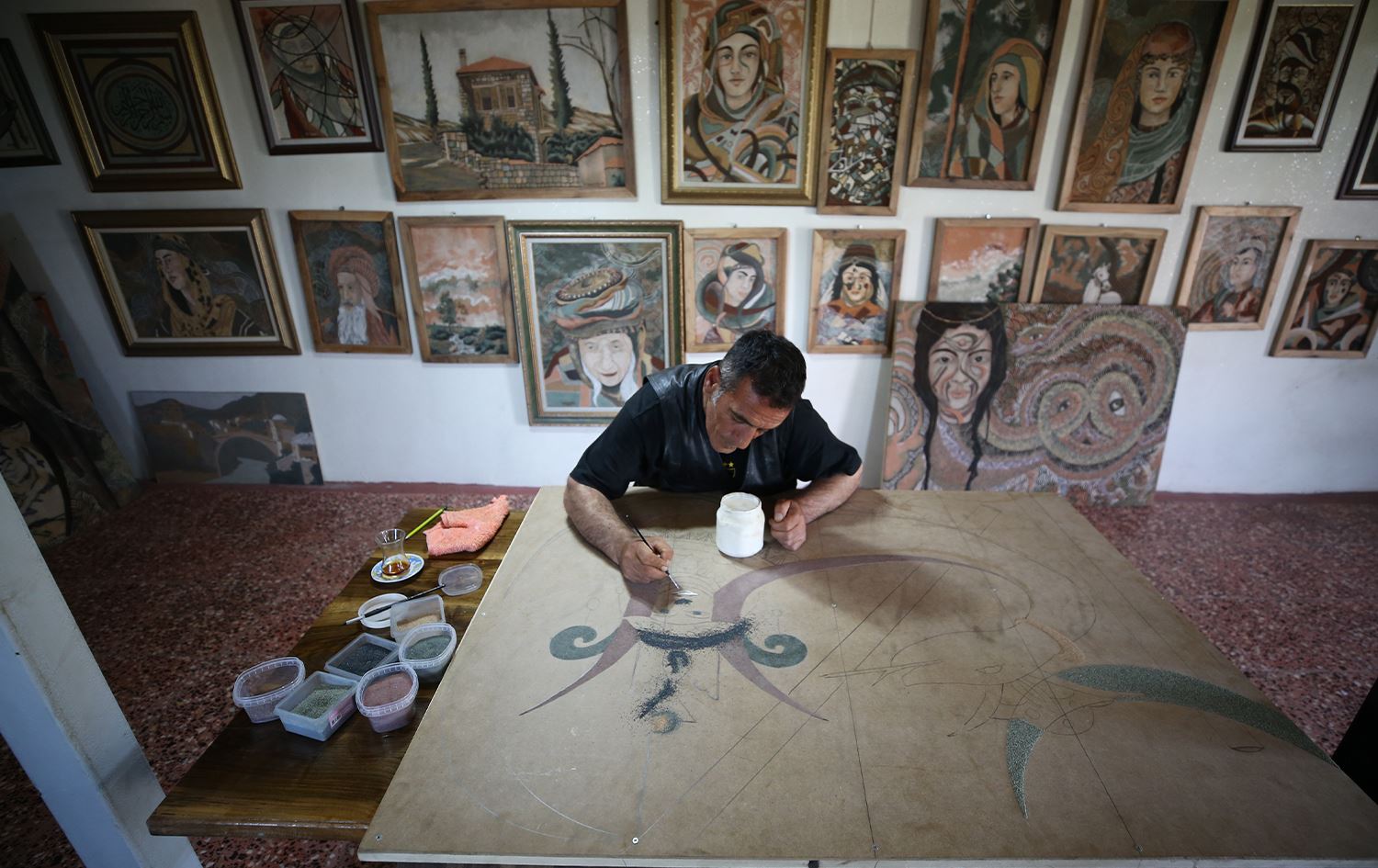 Hewlêr (Rûdaw) - Li gundekî parêzgeha Çewlîgê ya Bakurê Kurdistanê, Elî Riza Kiliç ê 50 salî çakûçê xwe dixe tûrik û berê xwe dide çolê. Ew li kevirên rengîn digere. Elî Riza Kiliç nîgarkêşekî bi nav û deng ê Çewlîgê ye. Ew kevirên rengareng di nav zeviyan de berhev dike, tîne mal, di nav hawinê hesinî de hûr dike, li bêjingê dixe û bi wê toza keviran van tabloyên bedew çêdike.