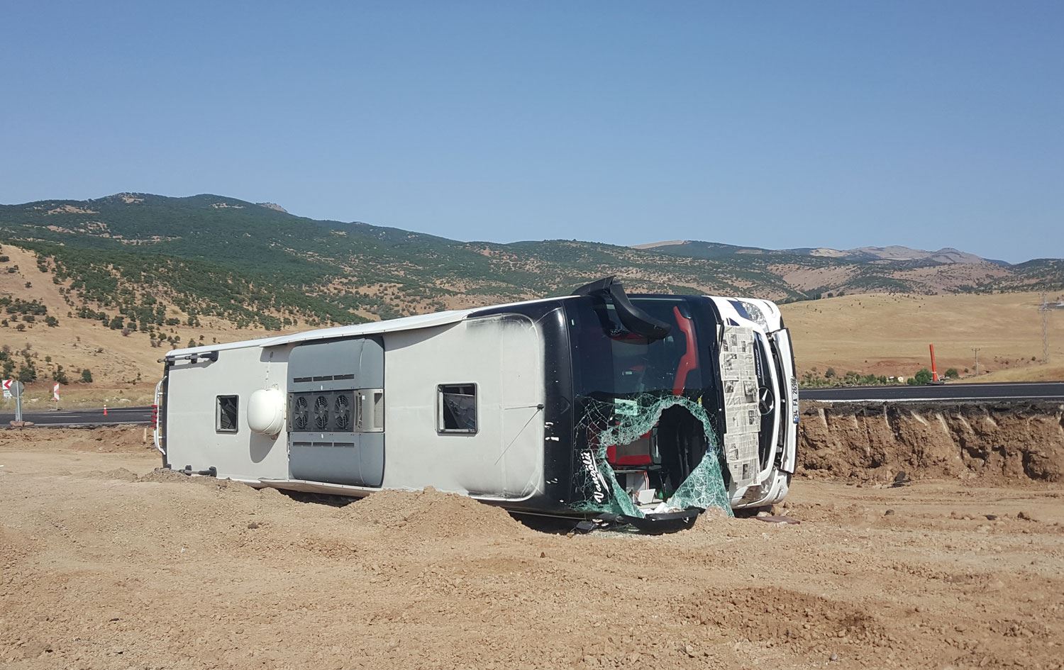 Otobusa bi plakaya “34 FA 2698”ê li ser rêya Çewlîg-Bongilanê ji kontrola ajokar derket û qulibî.