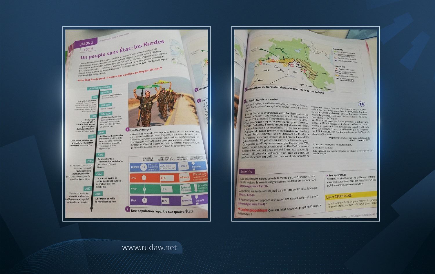 Hewlêr (Rûdaw) – Hikûmeta Fransayê dersek derbarê dîroka Kurd û Pirsa Kurd de dixe nav programa xwandinê ya pola 11 a qonaxa lîseyê. Ders di pirtûka dîrokê û cografyayê de hatiye danîn û navnîşana dersê jî, “Kurd: neteweke bê dewlet e.”