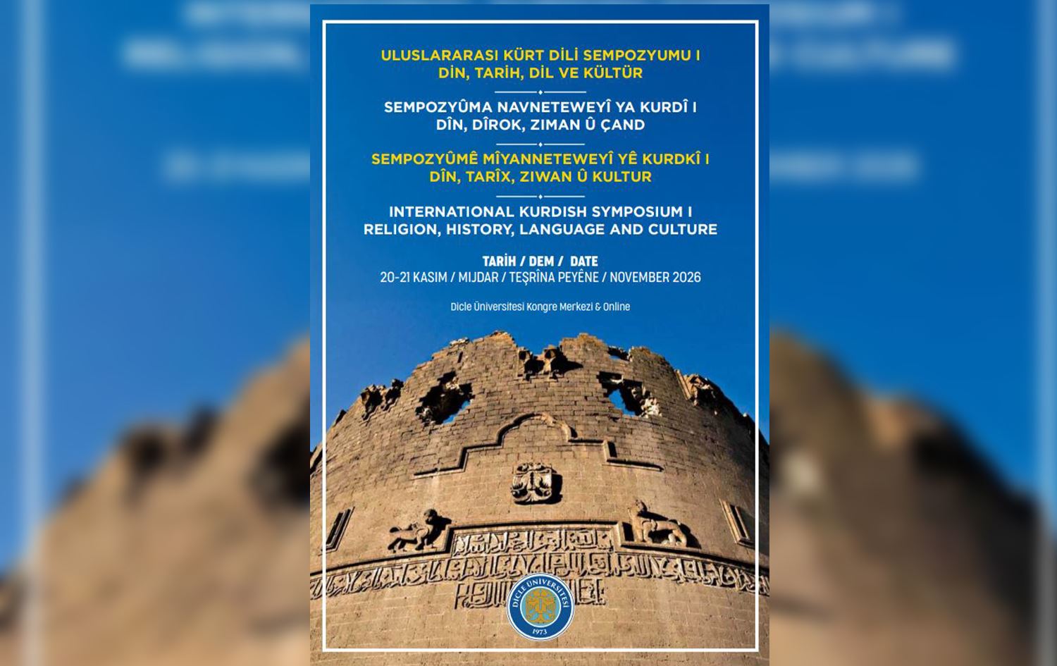 Zanîngeha Dicleyê dê di navbera 20-21ê Çiriya Paşîn a 2026an de mazûvaniya "Sempozyuma Navneteweyî ya Kurdî: Dîn, Dîrok, Ziman û Çand" bike.