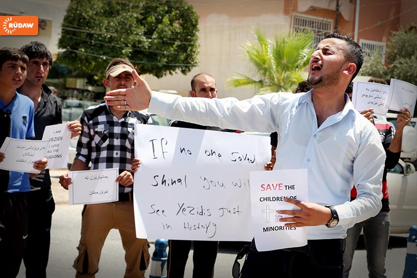 خۆپێشاندانی کوردانی ئێزدی لەبەردەم کونسوڵخانەی ئەمریکا و وەزارەتی پێشمەرگە 9