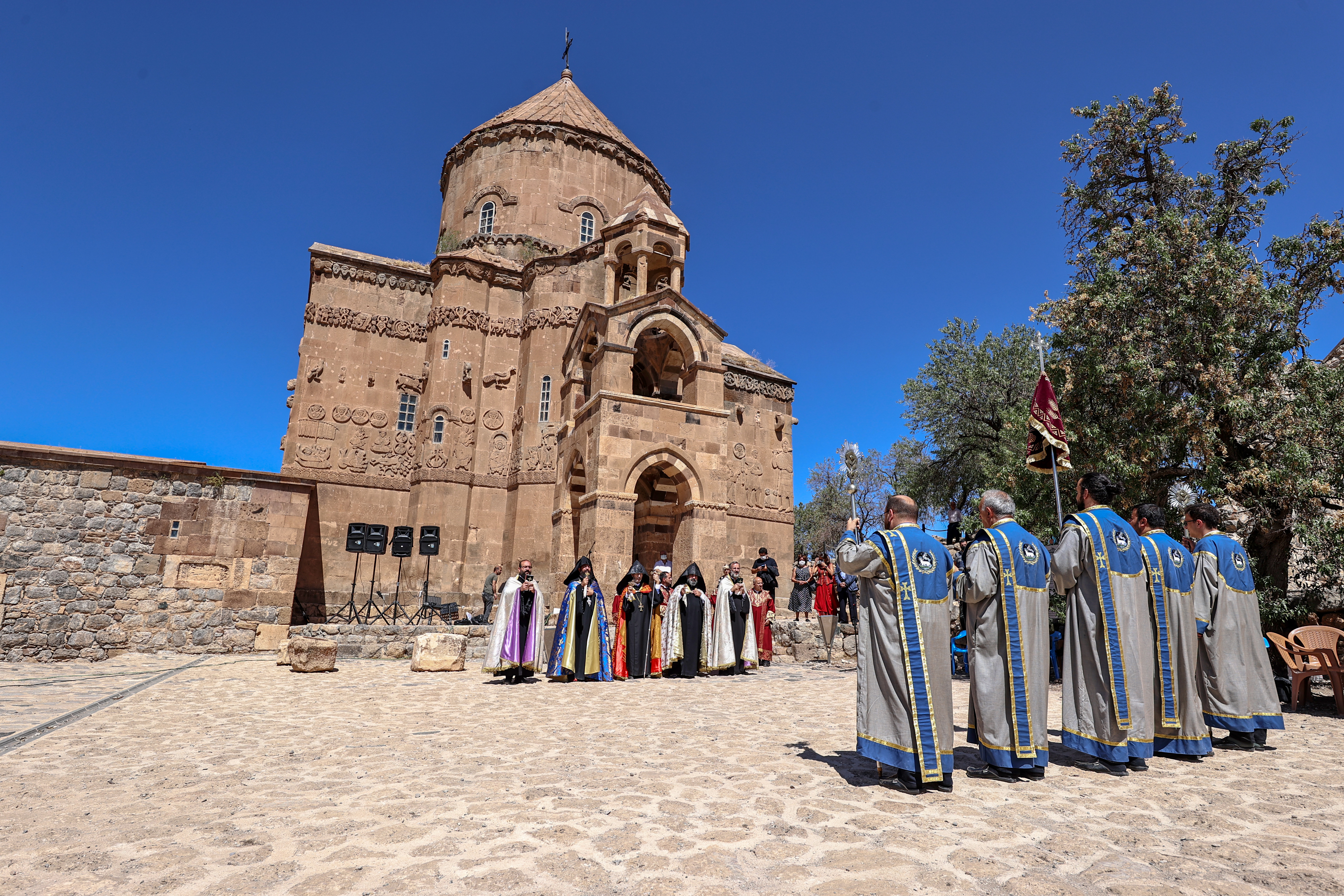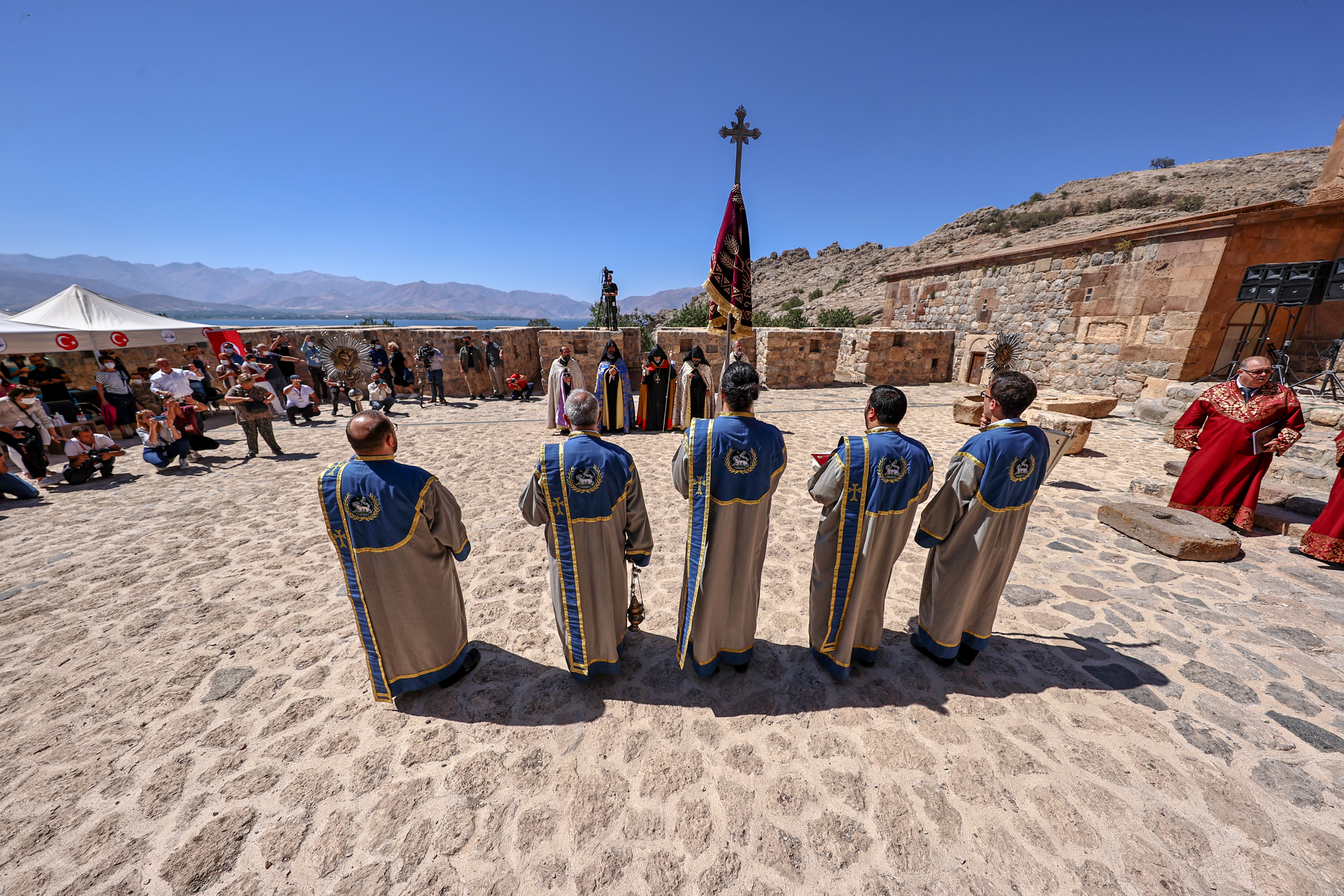 Sekreterê Giştî yê Patrîkxaneya Ermeniyên Tirkiyeyê û Serokê Meclîsa Rûhanî, Serekkahîn Tatul Anousyan tevî hejmarek oldarên Krîstiyan, îro serê sibê ji bendera Gevaşê çûne giravê û merasîma xwe ya olî saz kirin.