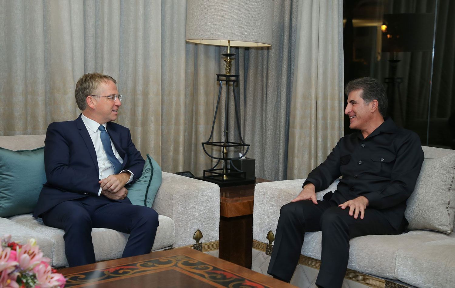 Hewlêr (Rûdaw) - Serokê Herêma Kurdistanê Nêçîrvan Barzanî, li Hewlêrê Şêwirmendê Serokê Fransayê yê Karûbarên Rojhilata Navîn û Bakurê Afrîkayê Patrick Durrell qebûl kir.